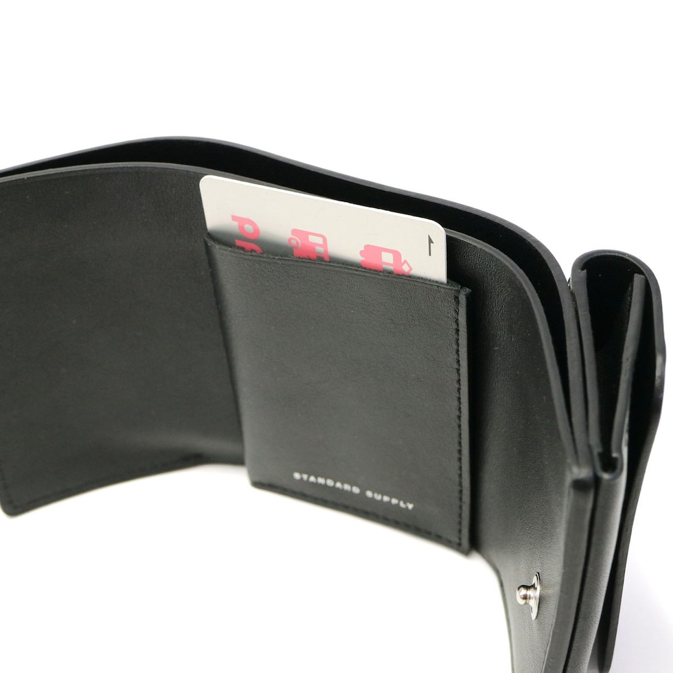 小さいながらもお札は折りたたまずに収納でき、必要最小限のシンプルな機能を装備した設計。カードポケットには2~3枚収納することができます。また、袋状の小銭入れは使い勝手も良く、アクセスしやすい外側に設置されています。