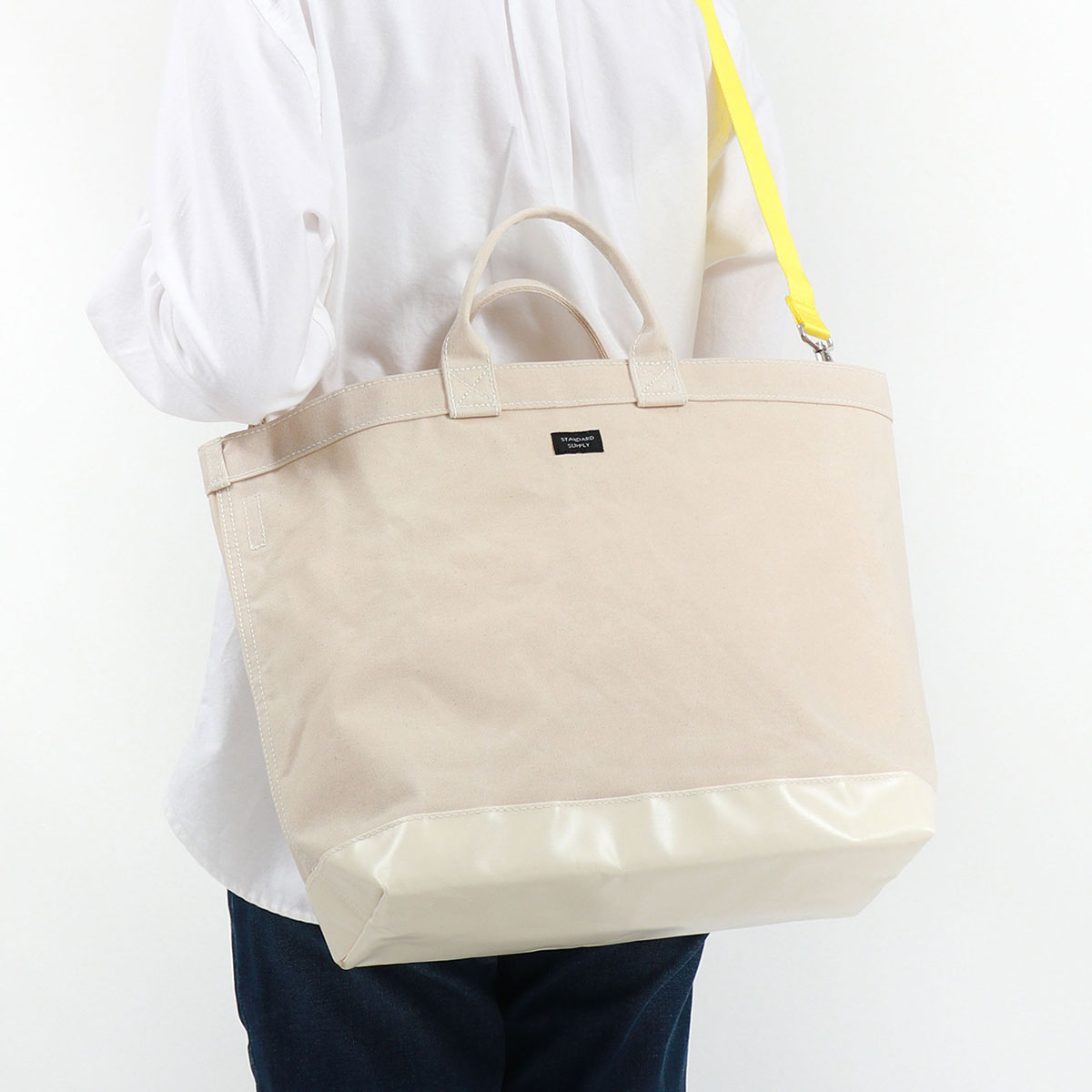 詳細説明 本体はA4サイズが収まるサイズ感。内側の背面にジップ式ポケットを設けた使いやすいシンプルなデザインです。トートバッグとしてはもちろん、取り外し可能なストラップが付属しているためショルダーバッグとしてもお使いいただけます。また表地にはアメリカの軍需物資として靴地やハンモックなどに幅広く活用されている丈夫なキャンバス生地、「ARMY DUCK(アーミーダック)」を採用。そこにパラフィンワックス加工を施すことで、張り感が出るため薄めの生地でもバッグが自立してくれるのは嬉しいポイントです。さらに底面には建築用のオーニングとして屋外でも使われる耐候性、耐久性に優れ防水性も兼ね備えたターポリン素材を使用しています。上品さを感じさせるルックスながら、機能性に優れたタフな仕上がりにより長くご愛用いただけるアイテムになっています。