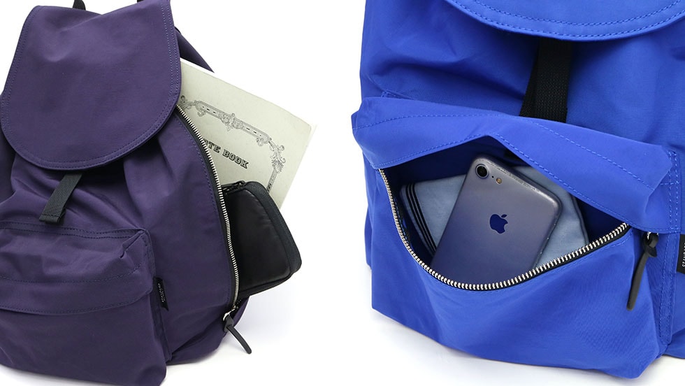 小振りなサイズのフラップ付きデイパック。使い勝手の良いサイズ感とベーシックなデザインから女性だけでなく、男性でも使いやすいアイテムに仕上がっています。豊富なカラーバリエーションを揃え、スタイリングしやすいのも魅力のひとつです。