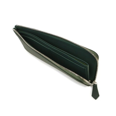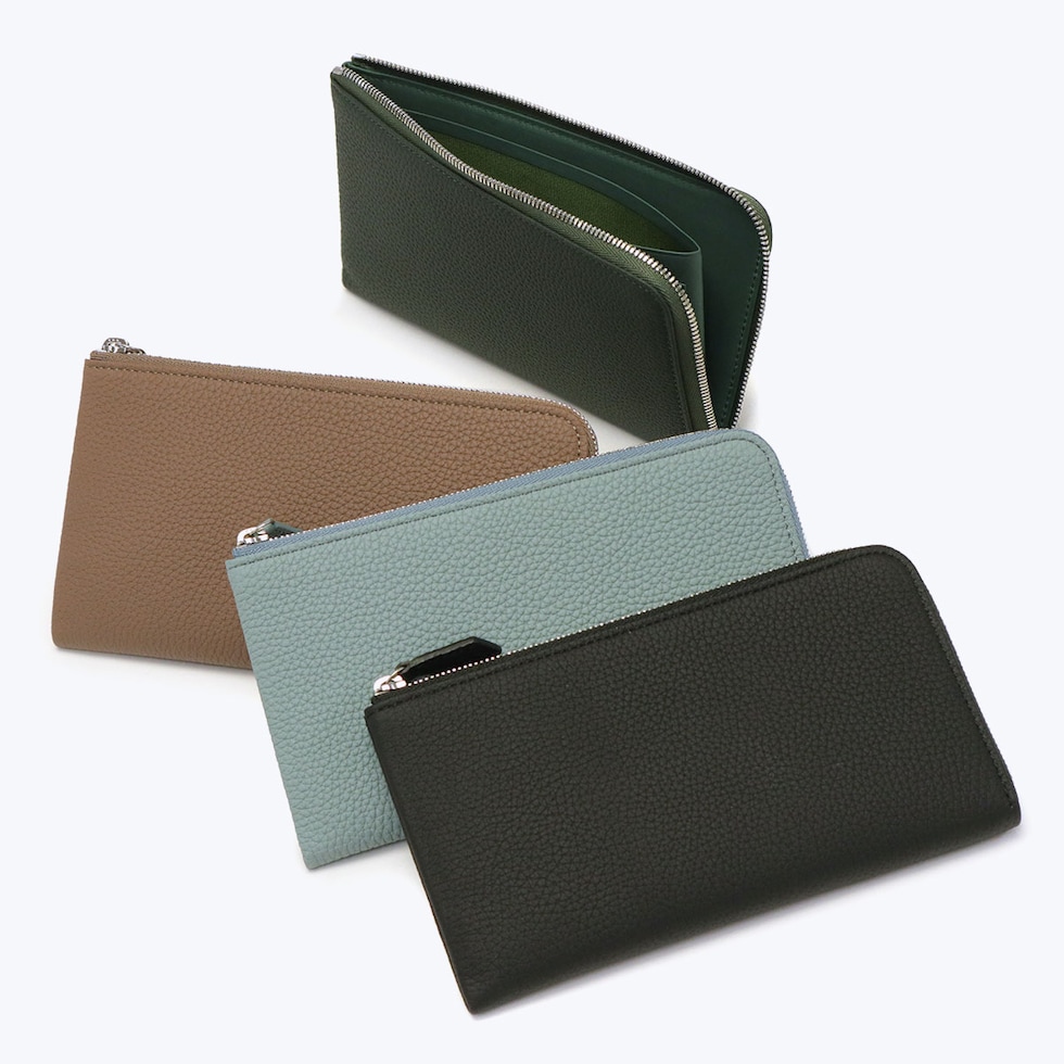繊細な上品さを、シンプルかつ機能的にアイテムへ落とし込んだ『GRACE』シリーズのL字ファスナー長財布。素材には、クロム鞣しにおいて最高峰の品質を誇るドイツ、ぺリンガー社の高級皮革「シュランケンカーフ」を採用しており、自然なシボによる様々な表情が魅力となっています。