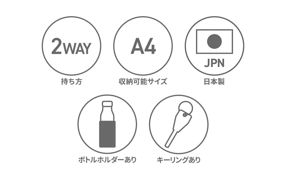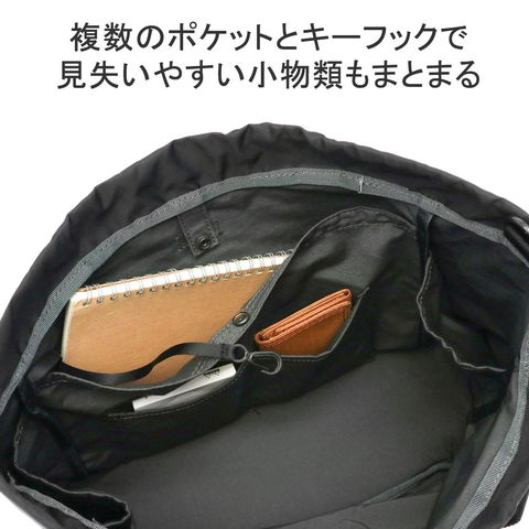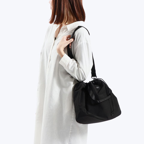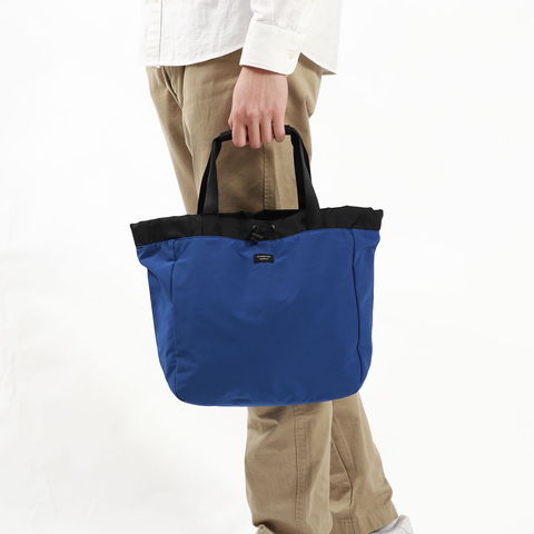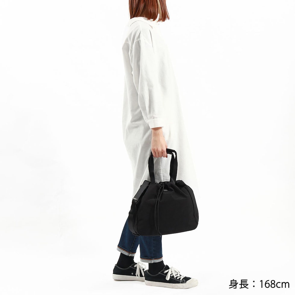 巾着を閉じることでシルエットの変わる2WAYトート。本体にはアウトドアウェアなどにも使用される、軽さと耐久性を兼ね備えた発色の良さが特徴の綿60%、ナイロン40%の生地を採用しています。内部にはポケットが複数設けられており、バッグの中をすっきりと保つことが出来るのも嬉しいポイント。ショルダーストラップは取り外し可能です。