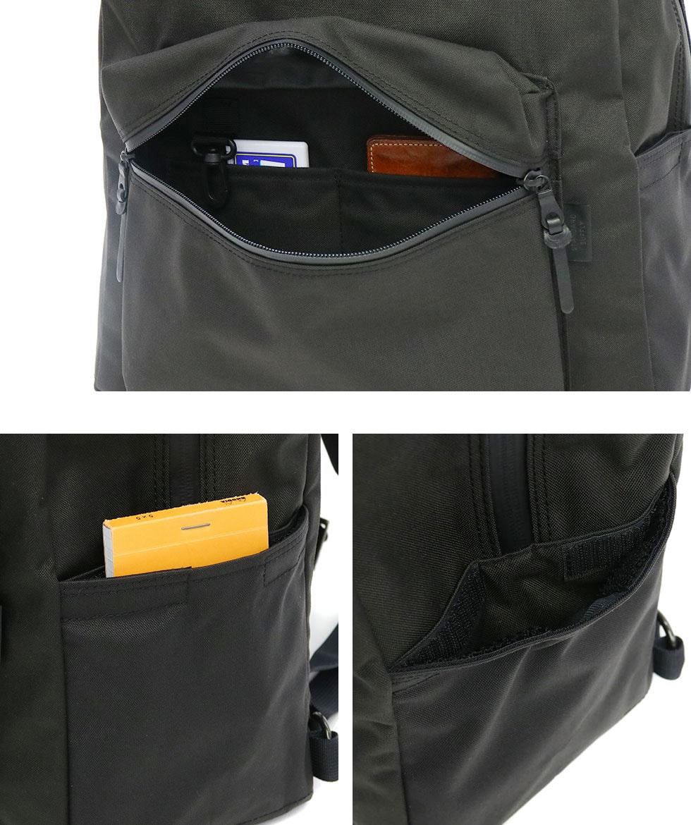 本体正面のポケットは左右どちらからでも開けやすいダブルファスナー仕様で、中には小分けポケットとキーフックを内蔵。サイドに設けられたベルクロ留めポケットは、指1本分の隙間を作ることで、開けやすいつくりになっておりユーザー目線の仕上がりになっています。