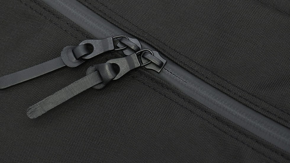 メイン素材には「CORDURA 500デニール ナイロン」を採用。裏面にはウレタンコーティングを3回かけ、表面には撥水加工を施した急な天候の変化にも対応してくれる頼もしいアイテムです。さらに開口部には止水ファスナーを採用することで、雨の日などに水が中に入るのを防いでくれます。