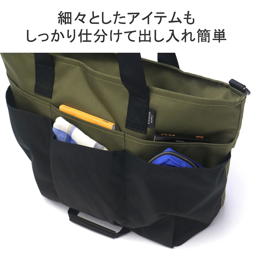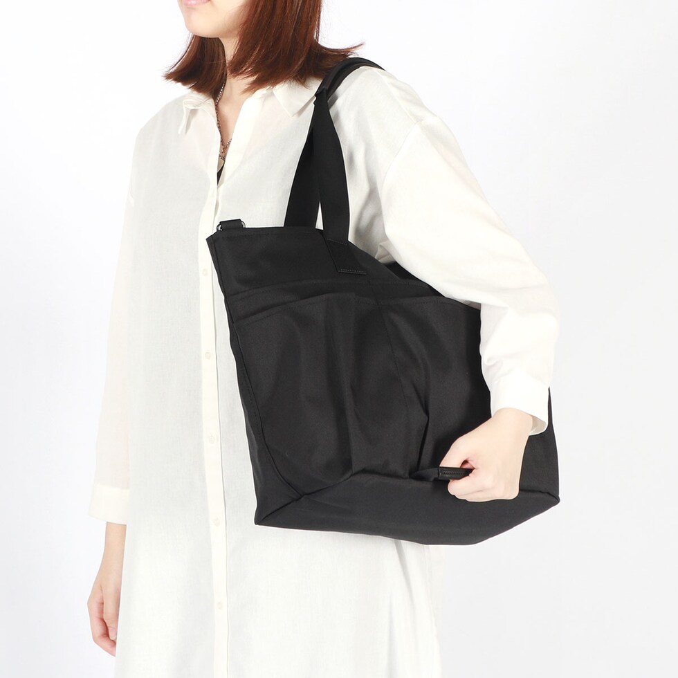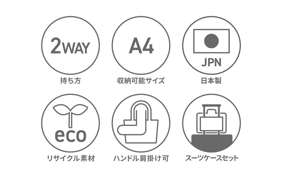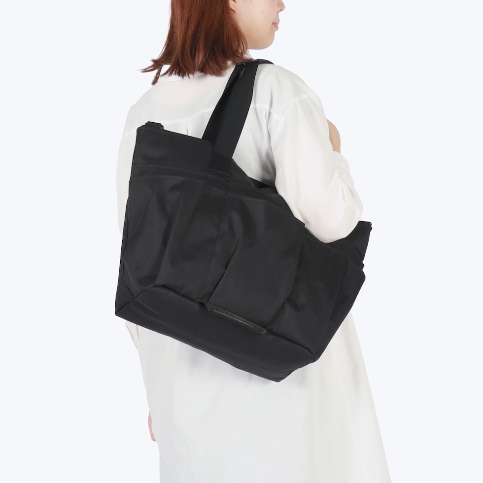 使用済みの古着や生地の端材を原料とした、厚手のリサイクルポリエステル「RENU」を使用した2WAYトート。多彩なアウトポケットや肩への負担を軽減する設計など、荷物が増えがちな旅行やお子様連れのお出掛け時に嬉しい細部のつくりが魅力。シンプルなデザインとカラーリングが、性別・シーン問わず幅広くマッチするアイテムです。