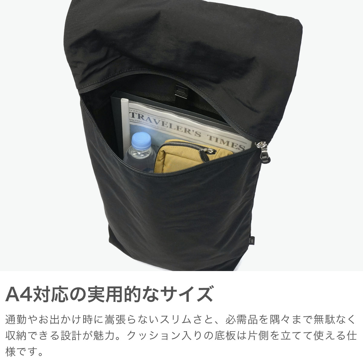 日常使いに欠かせないものだからこそ、シンプルかつ機能的に仕上げた『SIMPLICITY』シリーズのデイパック。すっきりとしたフォルムで移動時にも嵩張りにくく、スマートに持ち運べるのが魅力です。A4サイズ対応の7L容量で、通勤やお出かけに必要な荷物をきちんと収納可能。軽量で丈夫なコットンナイロン生地にアクリルコーティングを施し、耐久性も◎。内部ポケットなどのさりげない工夫で使い勝手も良く、きれいめにもカジュアルにも馴染むユニセックスなデザインに仕上がっています。