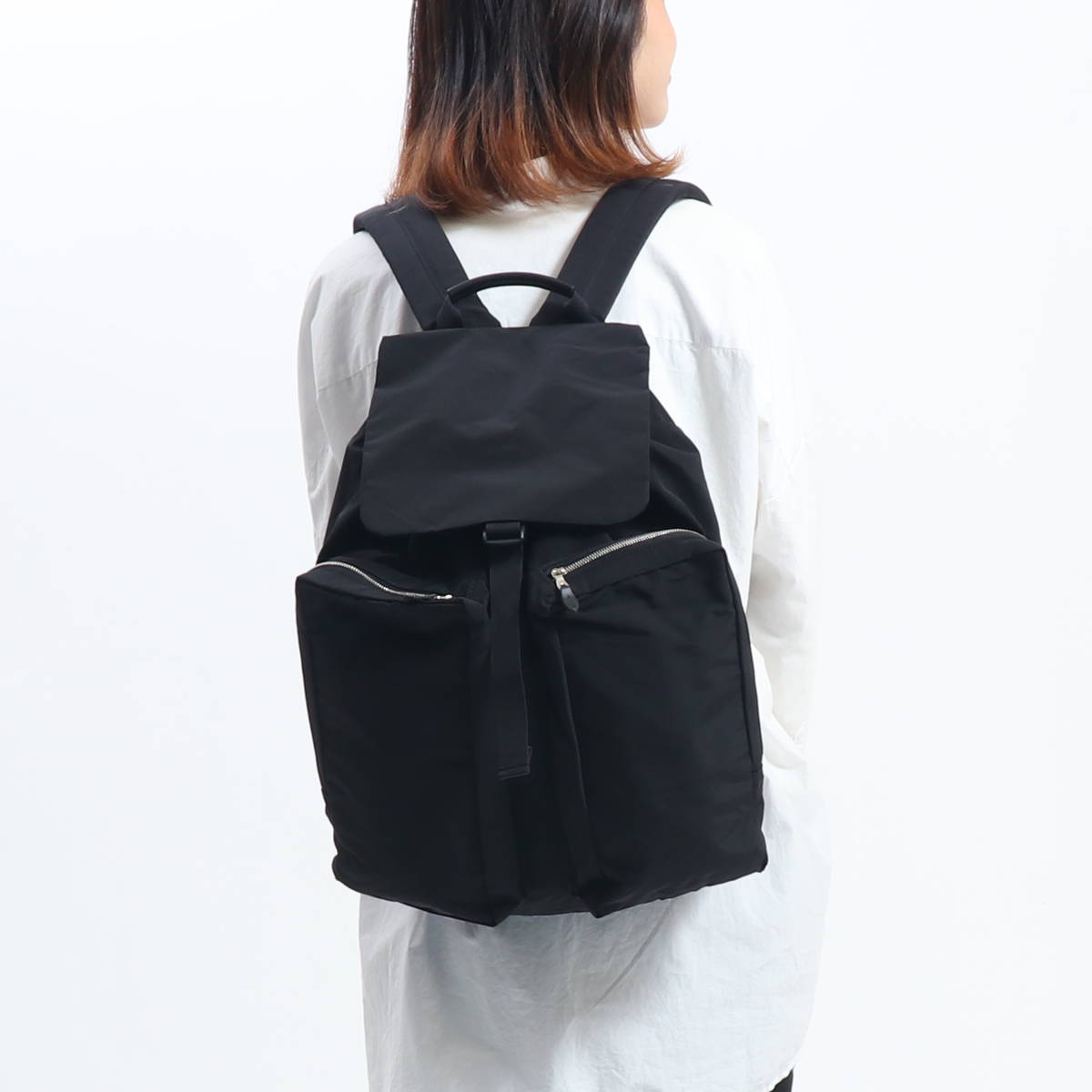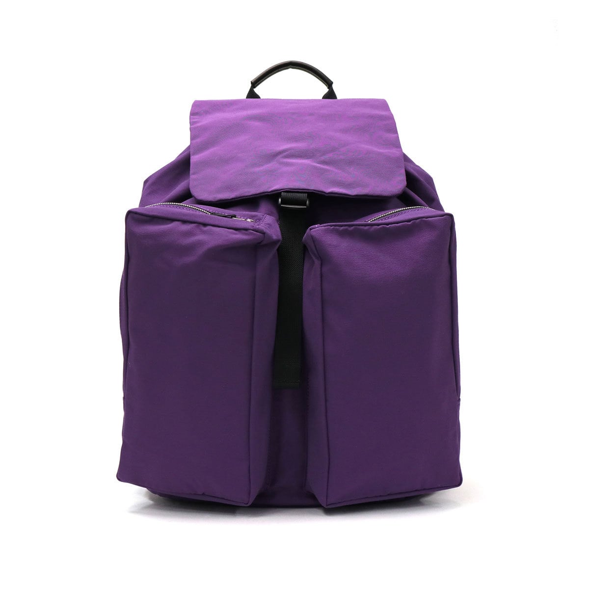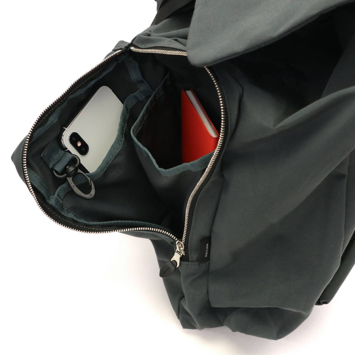 収納口は、フラップのついた型で口元が巾着仕様になっています。収納スペースはB4サイズに対応し、広々としたマチを設け荷物をザックリ収納可能。内装にはバックルポケットが備わっており、A4サイズのファイルなどわけてしまえます。非常に軽くて持ち運びやすく、デイリーから旅行にもオススメです。