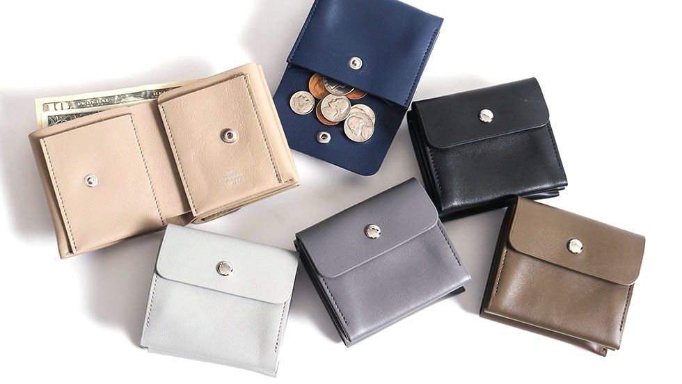 本体は外側にコインケースを配した使い勝手の良いつくり。コンパクトながら札入れには仕切りを設けているので、紙幣の仕分け管理もしやすくなっています。小さめのバッグにも収まりがよく、普段使いはもちろんのこと旅行やパーティシーンでのサブウォレットとしてもオススメです。