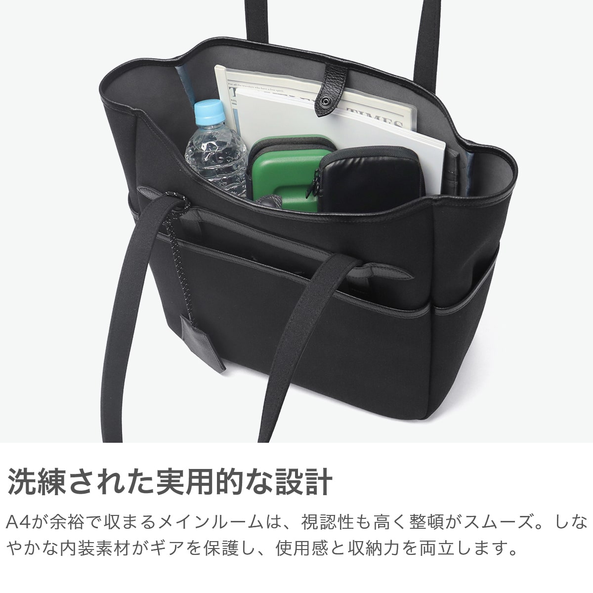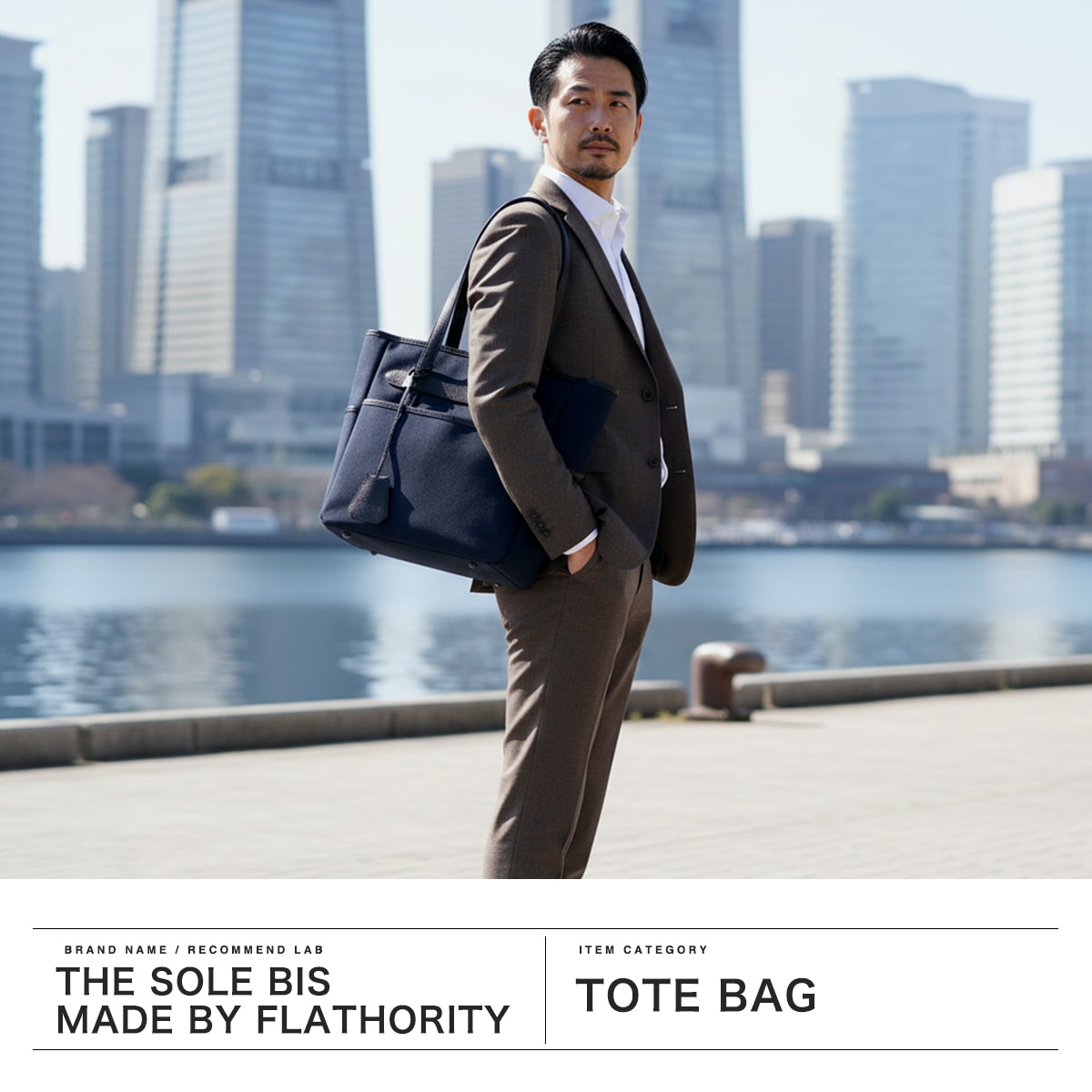 時代性にそった最高のクオリティーを求めて様々なアイテムを展開するブランド「THE SOLE」と、日本の老舗バッグ工房が作り出す「Flathority」とのコラボレーション『THE SOLE bis made by Flathority』。こちらは、デザイン性と実用性のバランスが素晴らしいビジネスからカジュアルまで幅広くご使用いただけるトートバッグです。シンプルなデザインで上品な佇まいで、ブランドの思いの詰まったアイテムに仕上がっています。