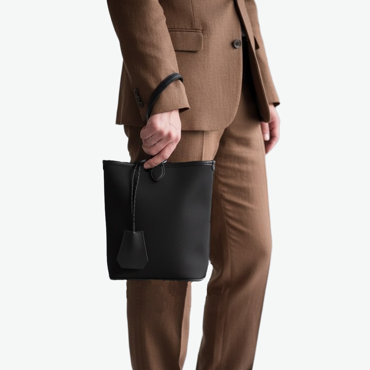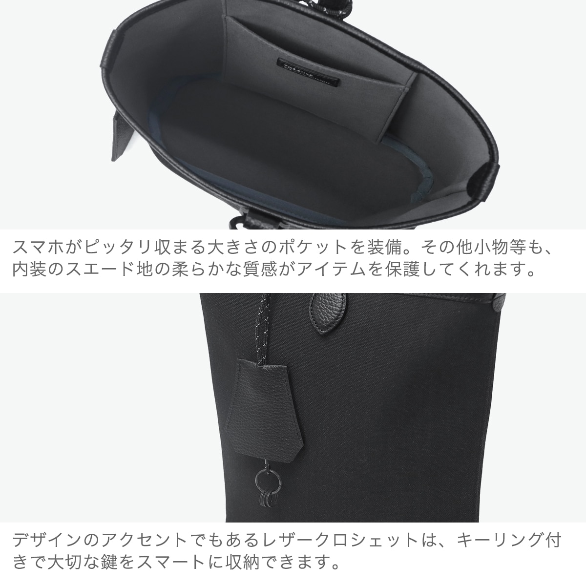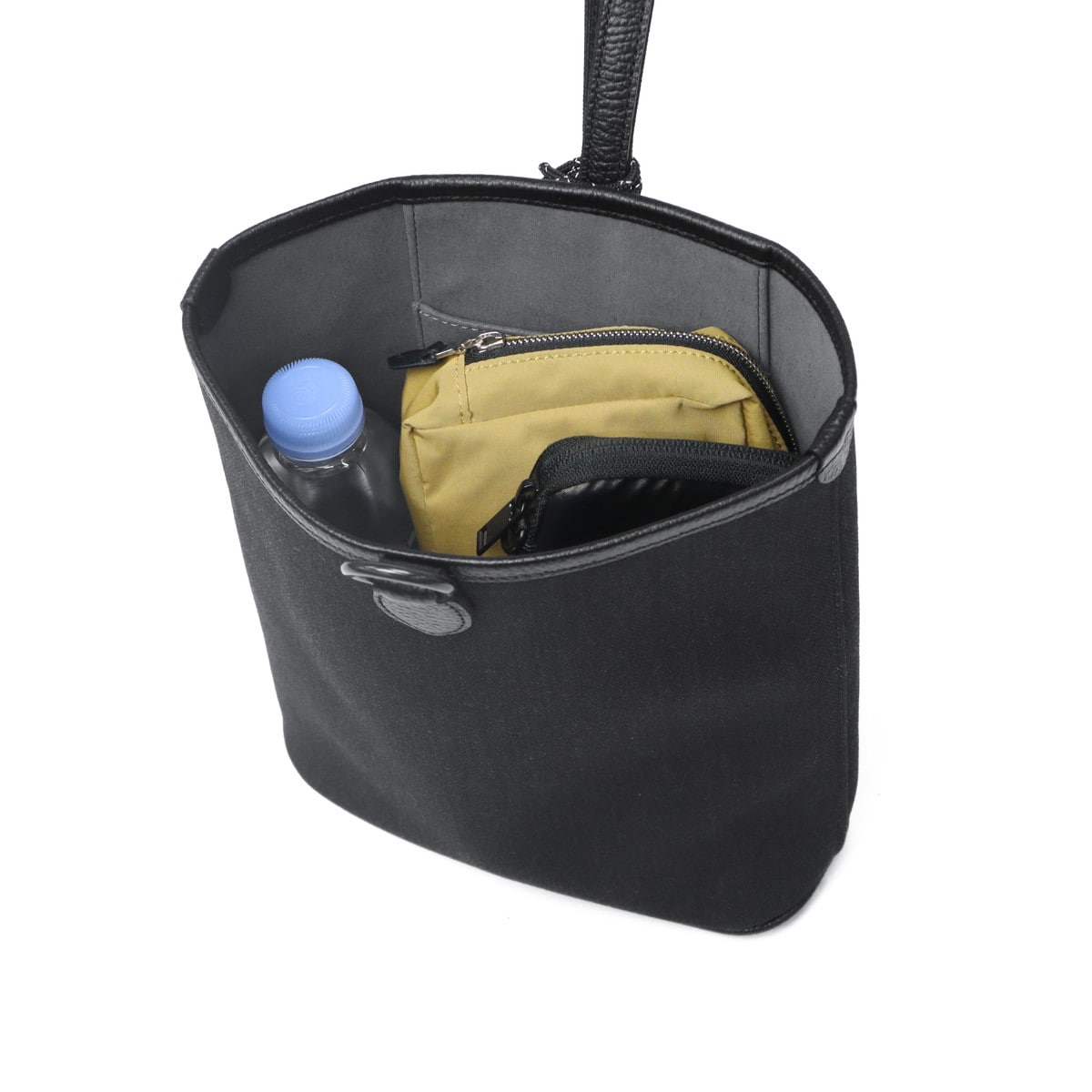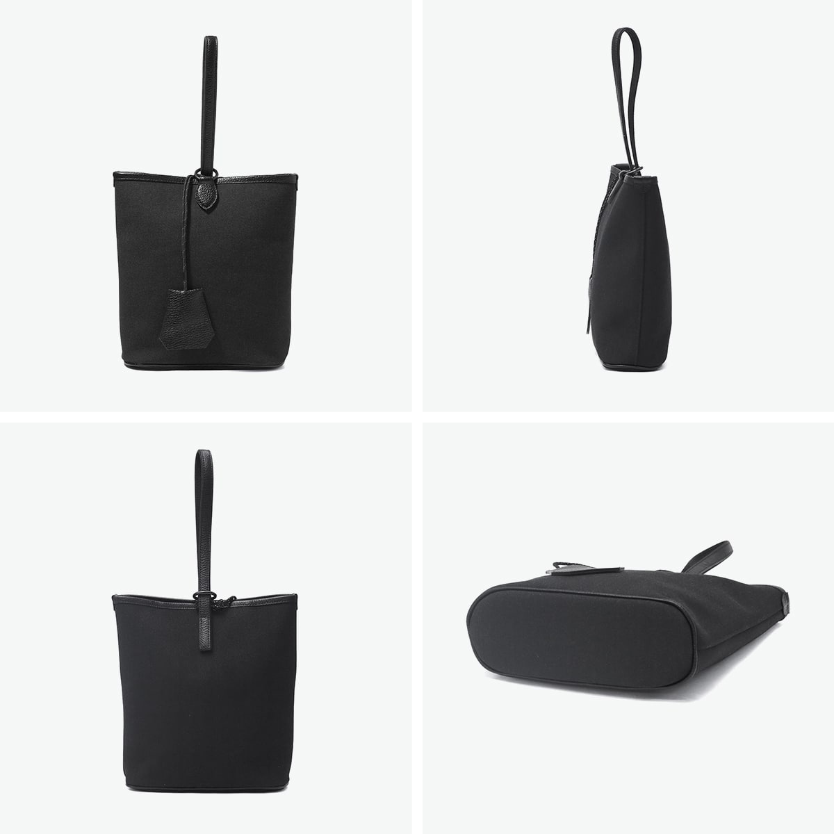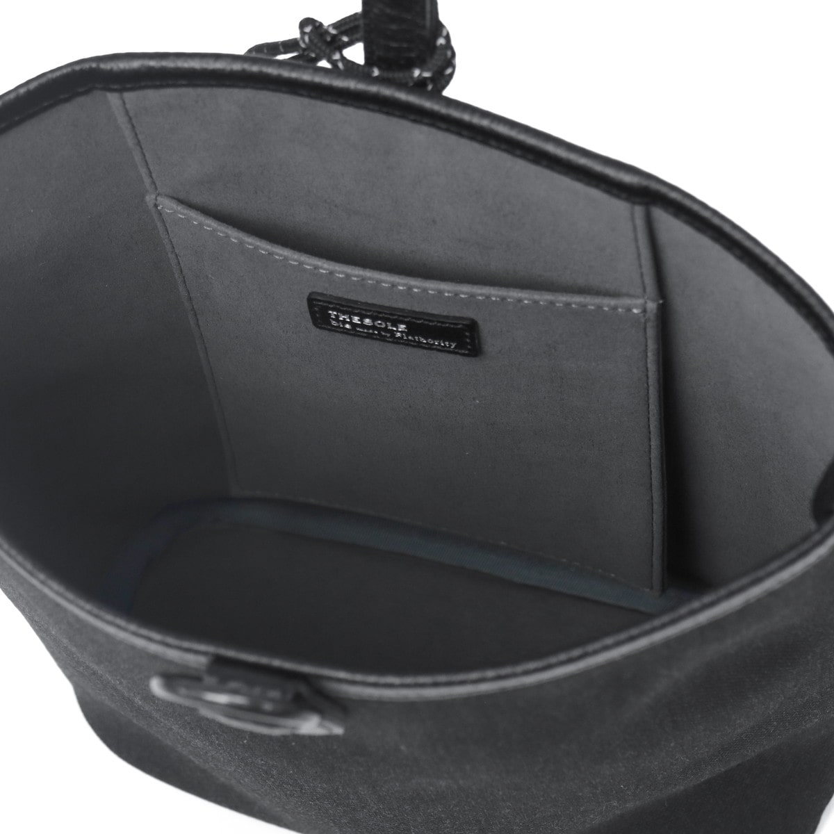 時代性にそった最高のクオリティーを求めて様々なアイテムを展開するブランド「THE SOLE」と、日本の老舗バッグ工房が作り出す「Flathority」とのコラボレーション『THE SOLE bis made by Flathority』。こちらは、デザイン性と実用性のバランスが素晴らしいワンハンドバッグです。サッと片手で持てるコンパクトなデザインながらも、500mlペットボトルも収納でき、休日やちょっとしたお出かけに便利なサイズ感となっています。
