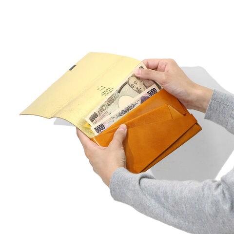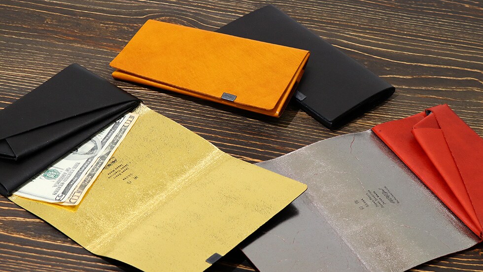 日本伝統の「折形」の紙が重なるディテールをデザインに落とし込んだ長財布。中身を取り出す際の仕草や動作などの「所作」を美しくみせるお財布です。外装と、開いた時の華やかな配色とのコントラストも魅力です。