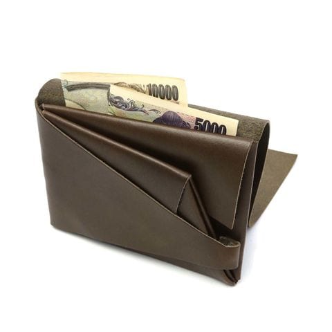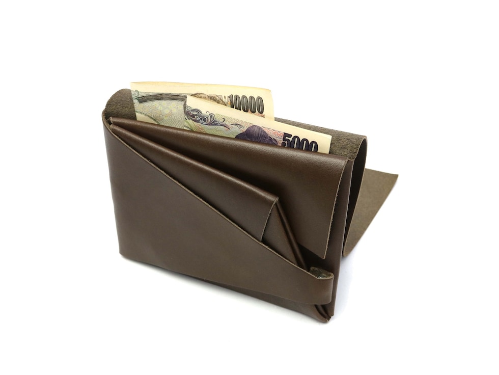 日本伝統の「折形」の紙が重なるディテールをデザインに落とし込んだ三つ折り財布。中身を取り出す際の仕草や動作などの「所作」を美しくみせるお財布です。毎日使い込んでいくことで、他のお財布では物足りなくなるような独特な設計が特徴です。