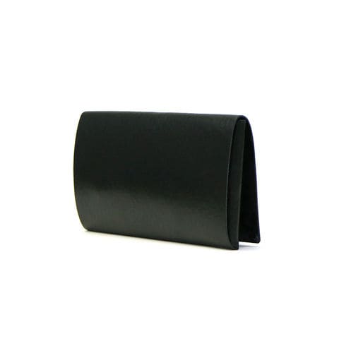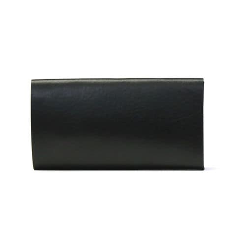 贈答品を包む「袱紗(ふくさ)」をモチーフにし、上質な一枚革を折って成形。縫わずに最後に1点をボルト&ナットで留め付けるだけという、日本の美学が表現されたデザインです。ファスナーやボタンを使わず、レザー本来の風合いを最大限に活かしています。