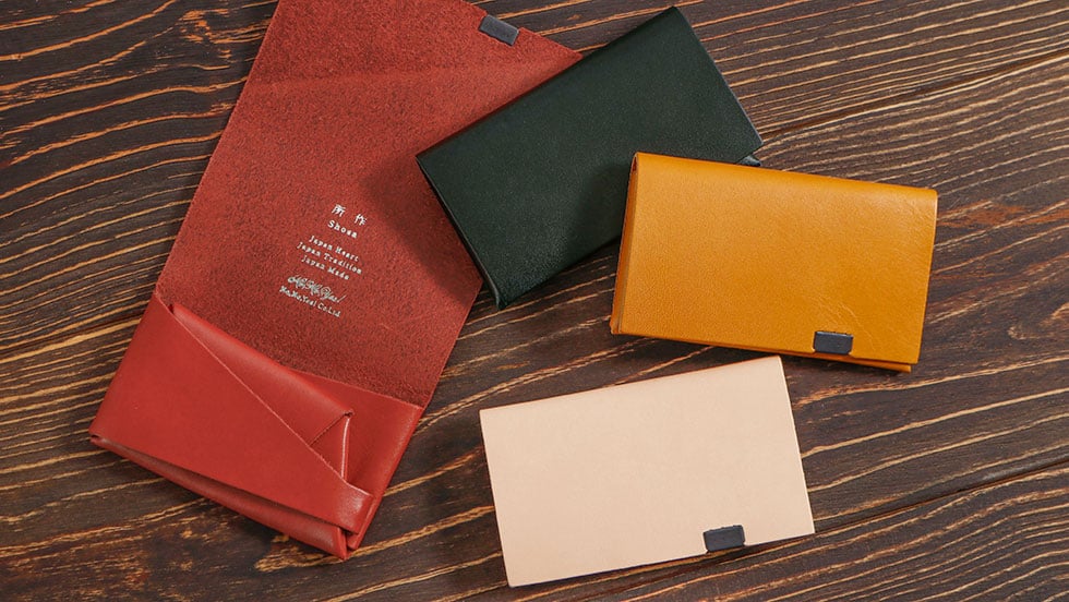 日本伝統の「折形」の紙が重なるディテールをデザインに落とし込んだコインケース。中身を取り出す際の仕草や動作などの「所作」を美しくみせるアイテムです。使い込むほどに色濃く光沢が増し、自分だけの色味に育てることができるので、愛着のわく一品となっています。