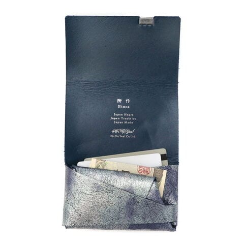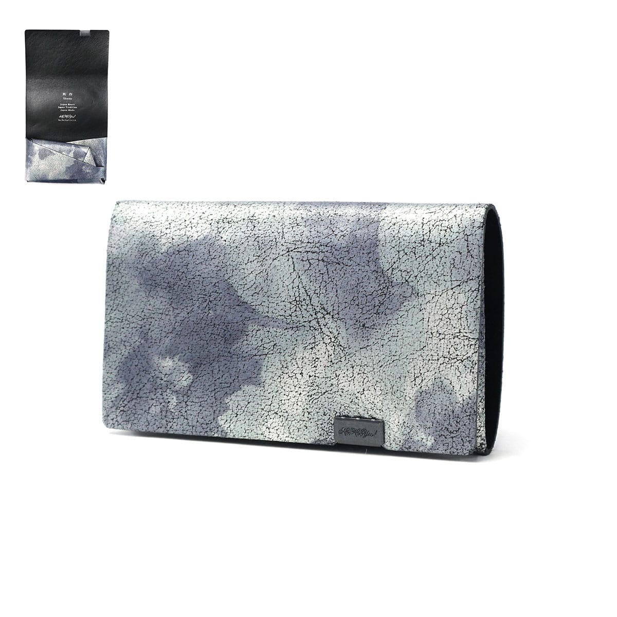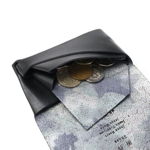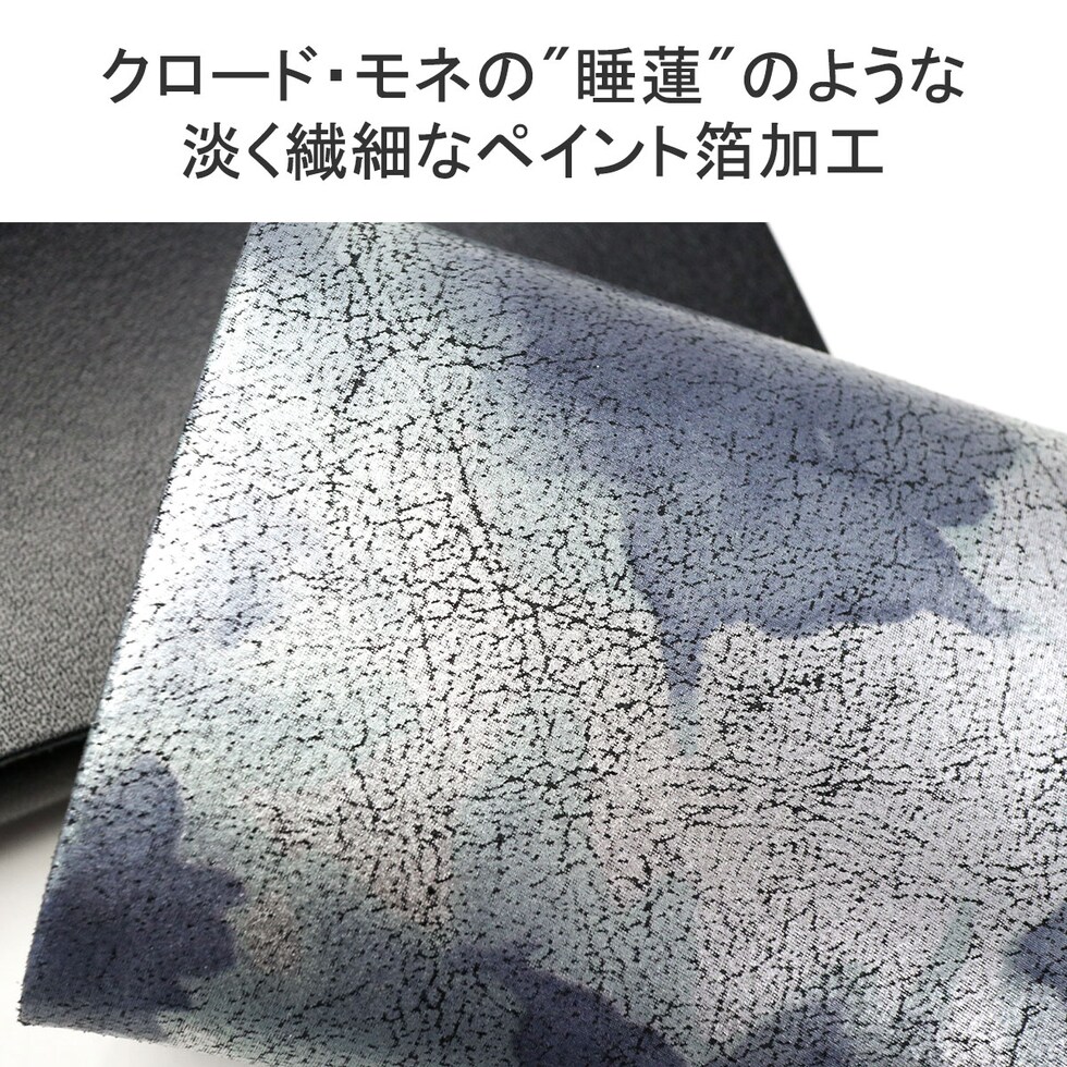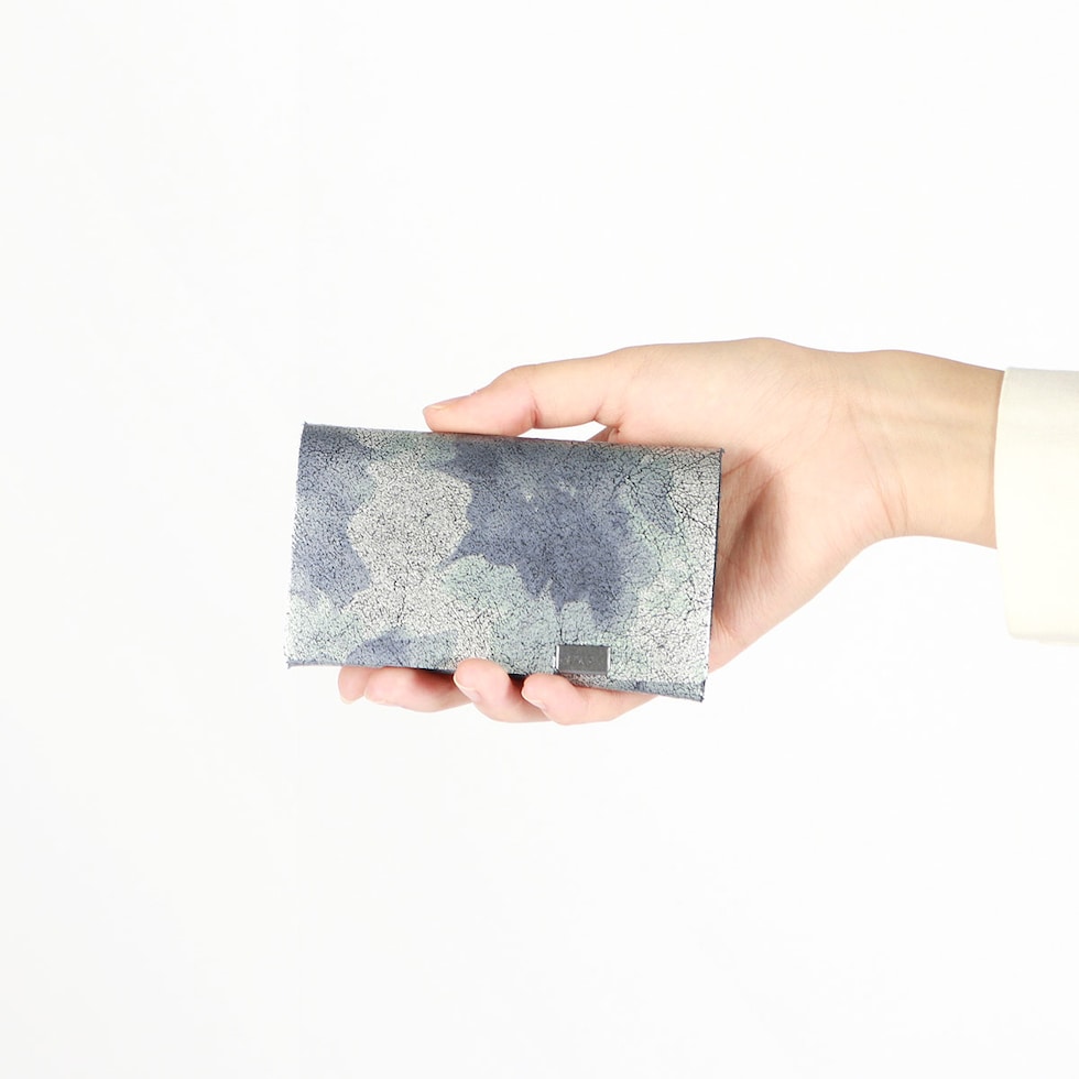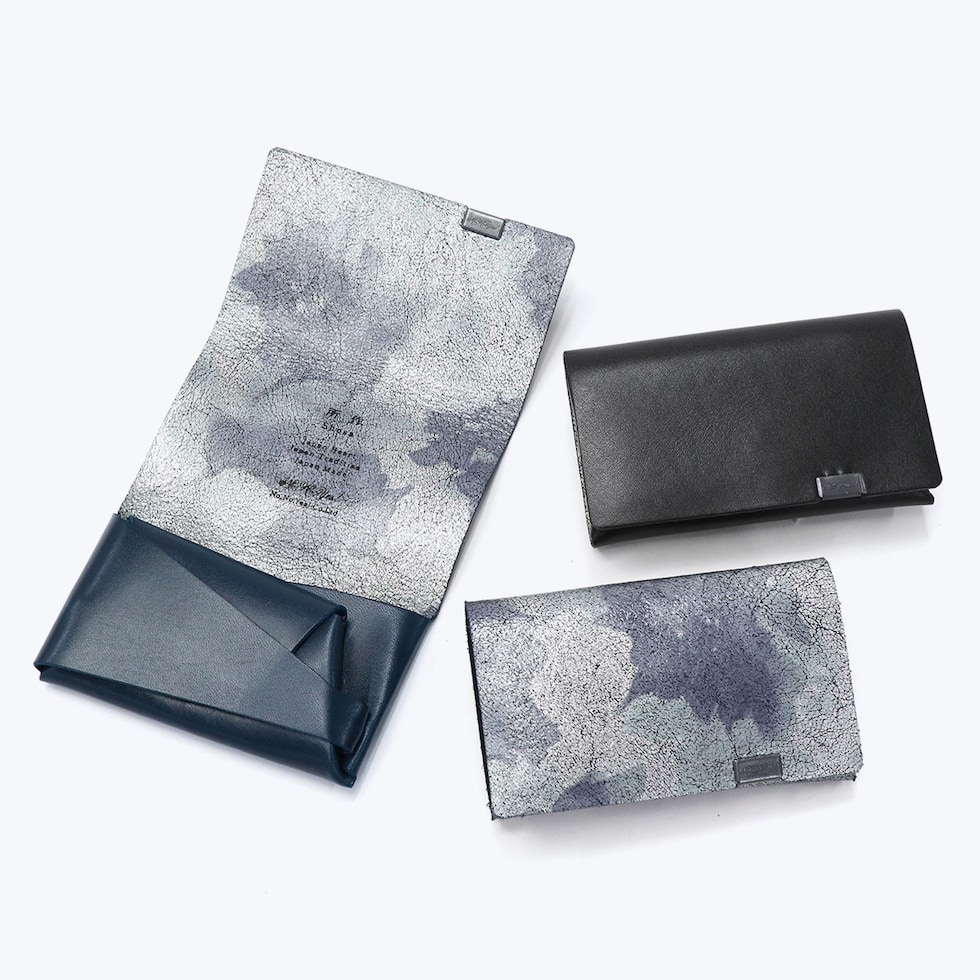 クロード・モネの作品“睡蓮”のように、淡くぼやっと滲む繊細さが溢れるペイント箔加工が目を惹くコインケース。表を柄にすると模様の擦れ具合がより楽しめ、裏を柄にすると開くたび美しいグラデーションに目を奪われます。贈答品を包む「袱紗(ふくさ)」をモチーフにし、折りと1点留めただけのミニマムな仕立てが美しい逸品です。