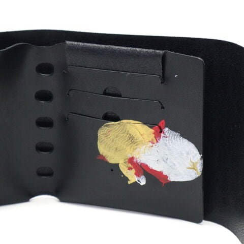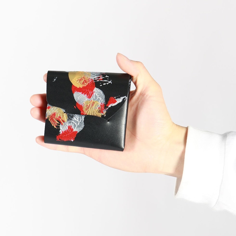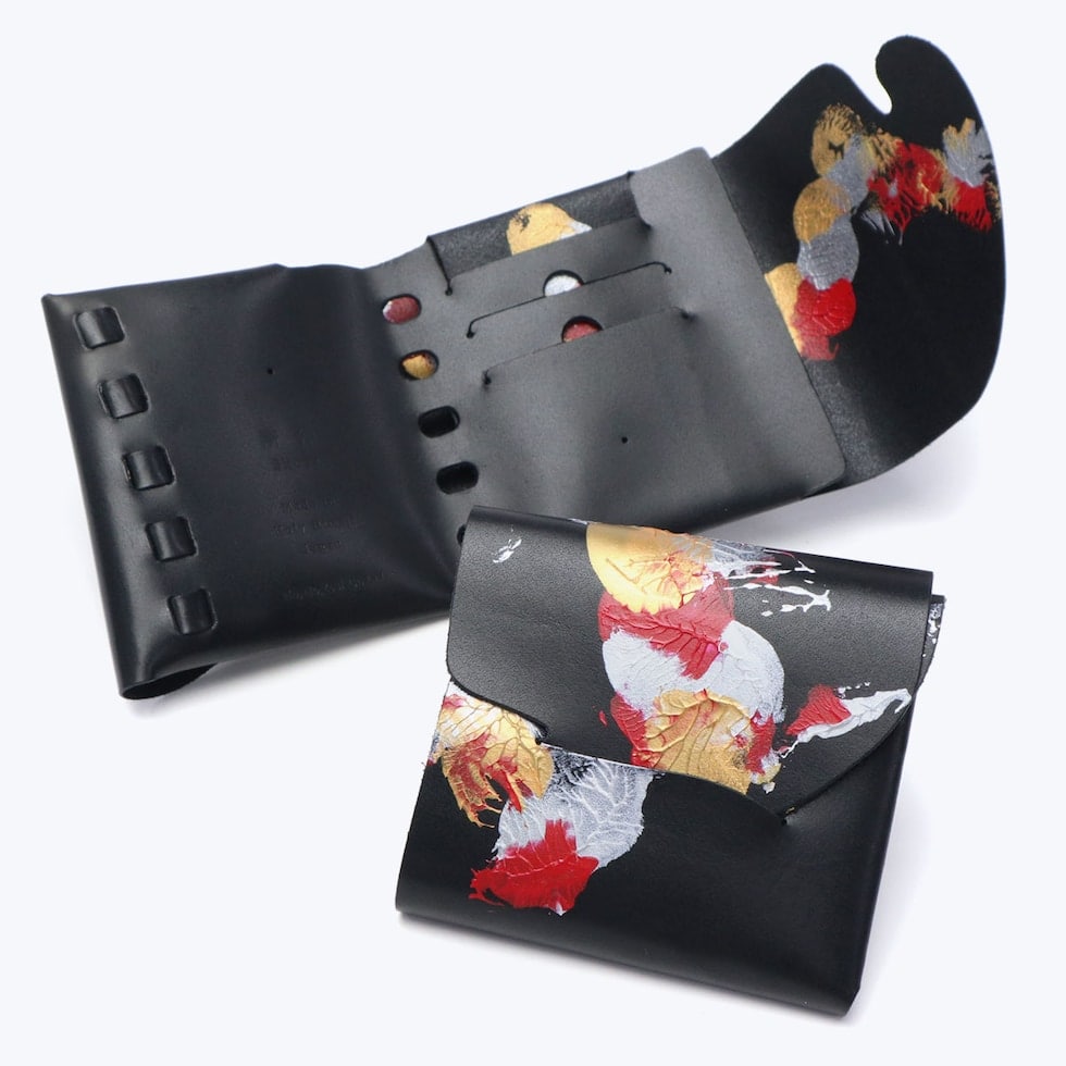 抽象的なペイントが映える、金魚をモチーフとしたデザインの三つ折り財布。「金」や「銀」といった鮮やな彩りが目を惹き、和のテイストに仕上がっています。財布の開閉動作がワンアクションで行え、スムーズかつスマートな使用感です。所作らしい心地よいつくりで、使う人に優美さを加えてくれます。