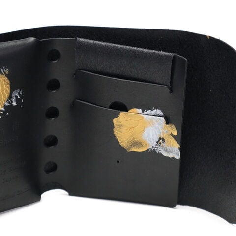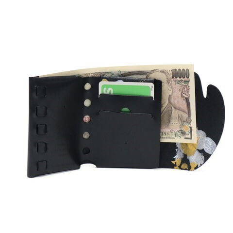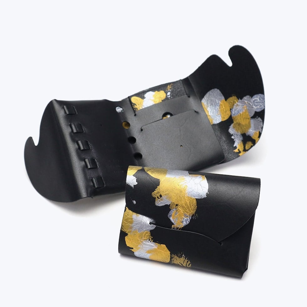 暗闇の海中を優雅に漂う、幻想的な海月をモチーフとした三つ折り財布。「金」や「銀」、「白」を基調とした、和の世界観が楽しめるデザインに仕上がっています。財布の開閉動作がワンアクションで行え、スムーズかつスマートな使用感です。1点1点職人の手作業によりペイントされているため、それぞれ異なった表情を楽しめます。