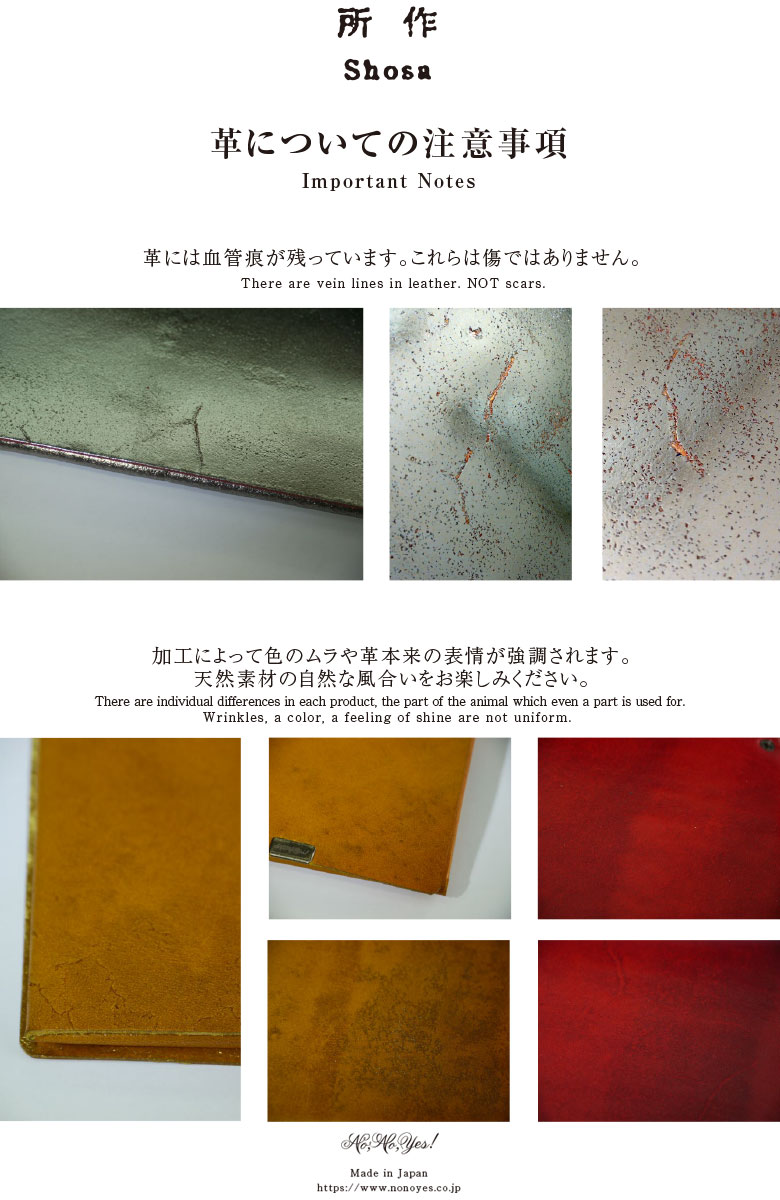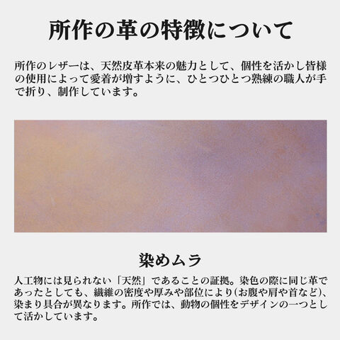 ・天然皮革を使用する製品のほとんどが、天然皮革ならではの風合いを生かして作られているため、表面にキズ・色ムラ・シワがある場合がございます。特性上、良品となりますので予めご了承ください。