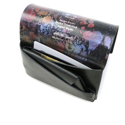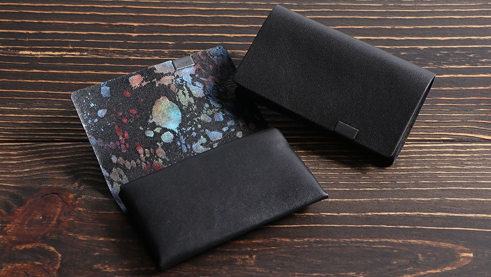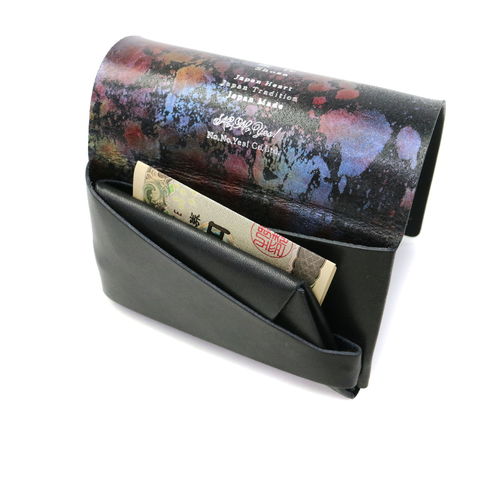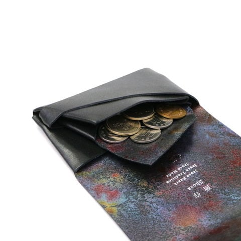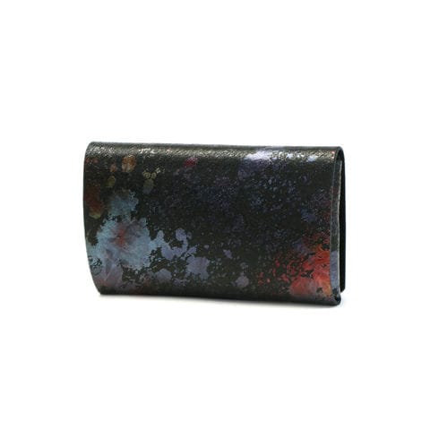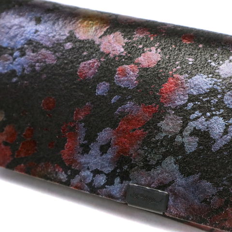 上質なブラックレザーに虹色の雫が飛び散ったかのような箔を乗せたコインケース。目を惹くオーロラペイントが、個性的かつアーティスティックな印象を与えてくれます。目立ちながらに品がある柄は、見る角度や光の加減により異なる表情を魅せてくれます。