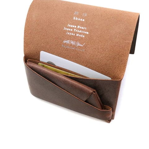 日本伝統の「折形」の紙が重なるディテールをデザインに落とし込んだコインケース。こちらは油分が多く含まれたブライドルレザーを使用し、所作シリーズに使われるレザーの中でも重量感と頑丈な質感を感じることができます。使い込むほどに美しいツヤが増し、奥深い色へと変化していくのも魅力のひとつです。