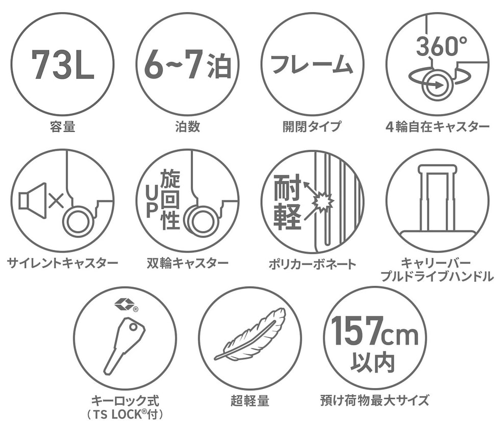 旅慣れたユーザーから圧倒的な支持を得ているロングセラー『SUPER LIGHTS』のハードキャリー。本体に頑丈なマグネシウムを使用し、重厚感のある見た目ながらも強度と驚きの軽さの両立を実現しました。ハンドルには、世界初の「抗菌ハンドル」を採用。雑菌の養殖を抑える加工を施すことで、旅中でも常に清潔さをキープすることができます。