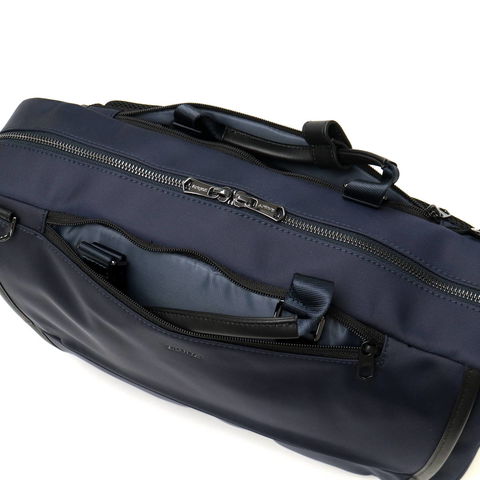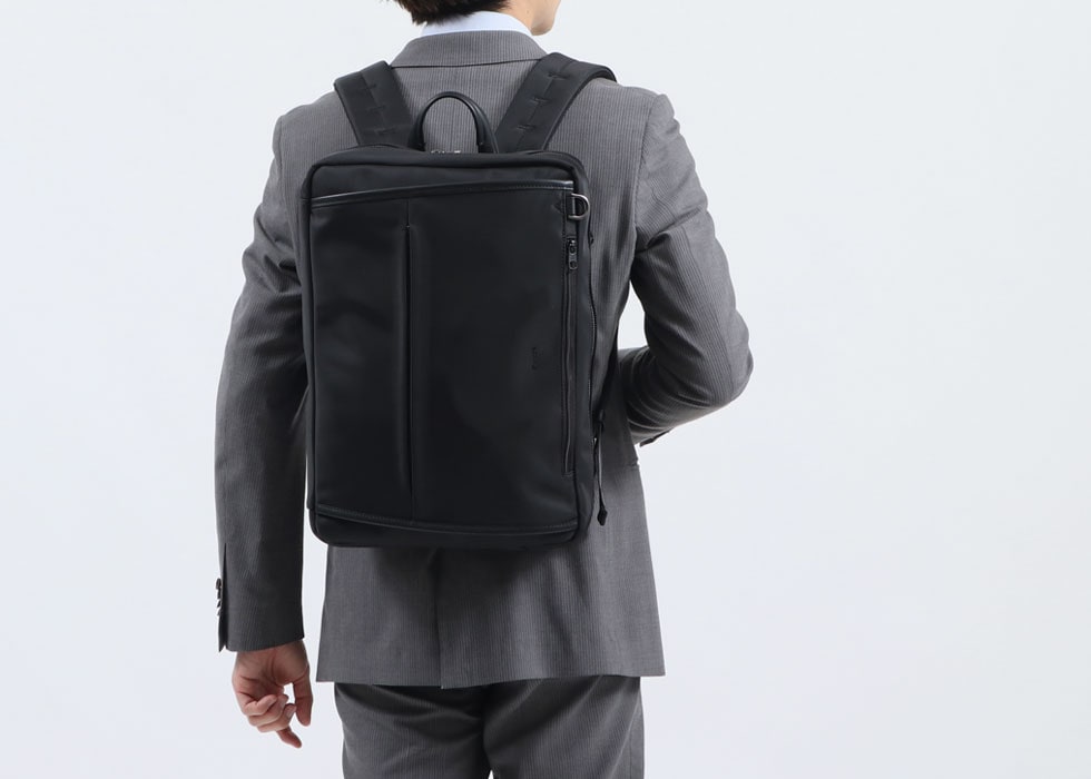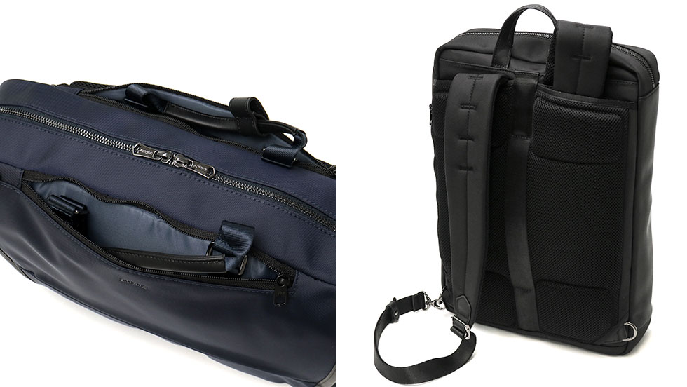 本体はビジネスマンのシチュエーションに合わせてスタイルを変えられる3WAY仕様。リュックストラップ、ハンドルは格納でき、ショルダーストラップは着脱可能なので、未使用時にはそれぞれのパーツが邪魔になることなくすっきりクリアな外観でご使用いただけます。