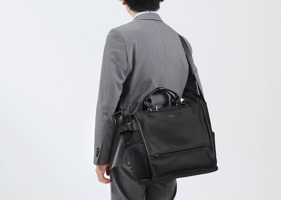 スポーティーなテイストで制作したシリーズ『DELIGHT』のショルダービジネスバッグ。コロナの影響で通勤スタイルや働き方が大きく変わり、テレワークを推奨する会社や自転車通勤を始める人が増えてきました。そういった通勤スタイルに合わせて、動きやすさや収納力に特化した鞄に仕上がっています。