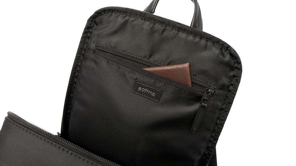 前面、背面収納部にはそれぞれ小分けポケットをしっかり装備。バッグの中で荷物が混在することなく、常にすっきりとした内装を保つことができます。