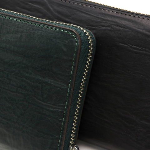 イタリアの名門タンナーのバケッタレザーを使用したコレクション『SCIROCCO/シロッコ』のラウンドファスナー長財布。バケッタレザーならではの深いシワ感や色ムラ、使い込む程にみせる表情の変化を楽しんで頂けるアイテムです。さらに、一点一点異なる表情も特別感のある雰囲気を高めます。