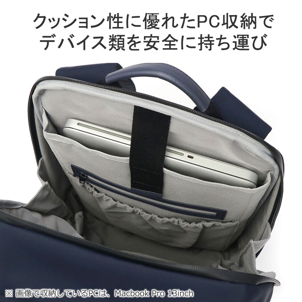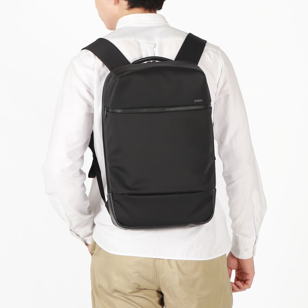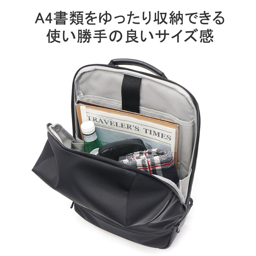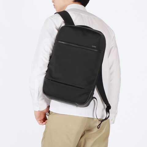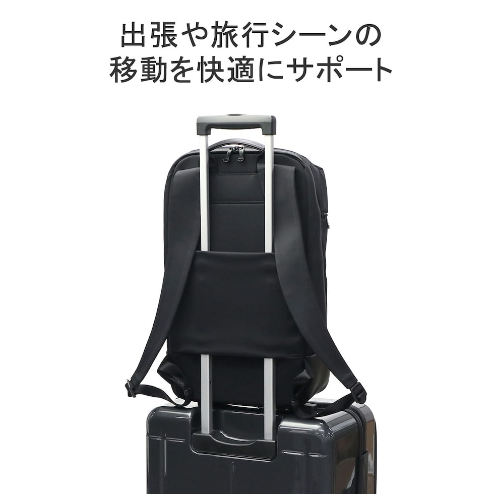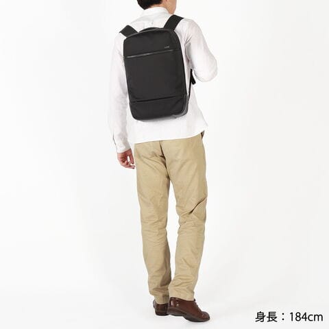 整理のしやすさをこだわり抜いた機能的なシリーズ『TRIM/トリム』のA4サイズバックパック。メイン素材は、上品で適度に光沢のある撥水ナイロンを使用。またハンドルや底面部分には、マイクロファイバーをベースにした素材を採用しており、革のような高級感がありながらも軽量かつ耐久性に優れた機能がポイントです。