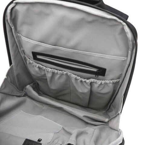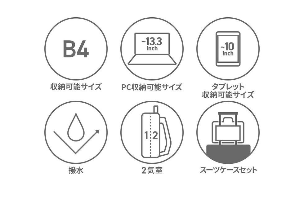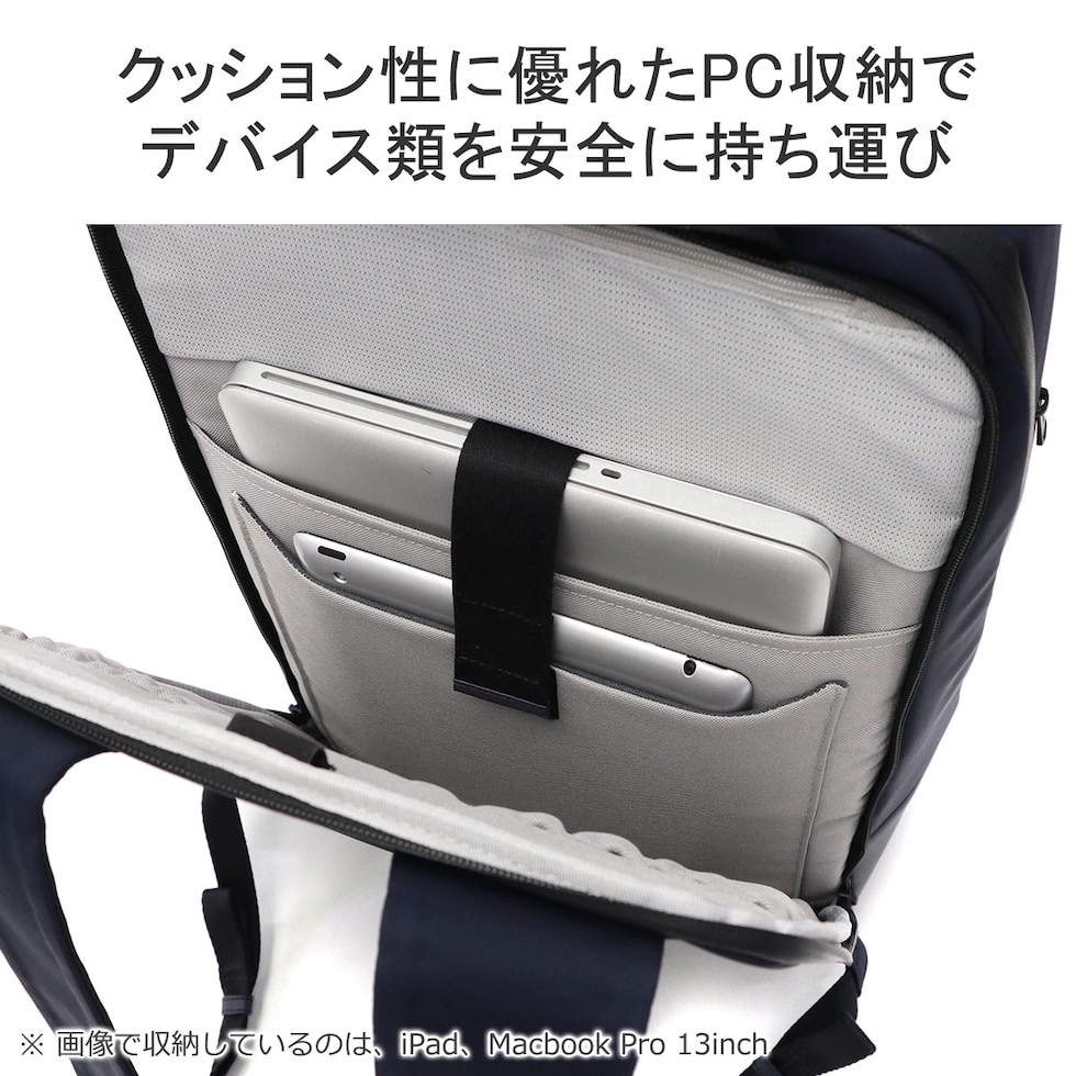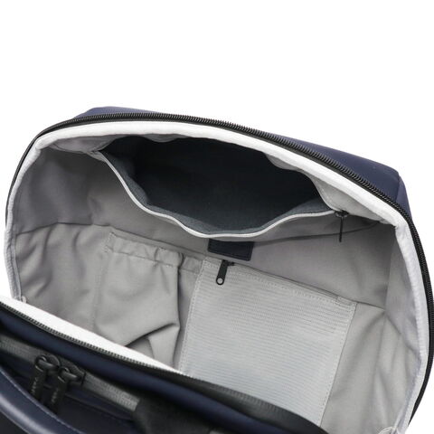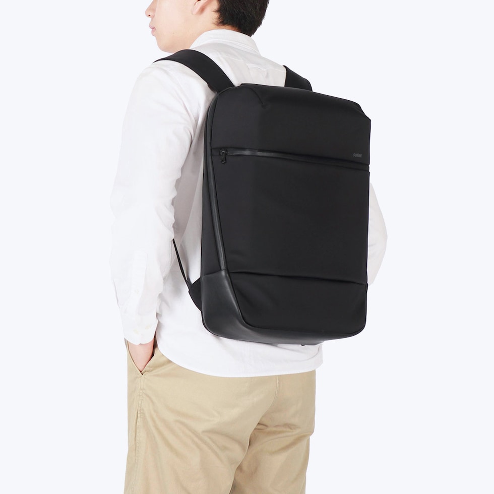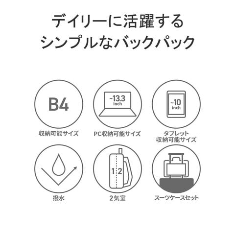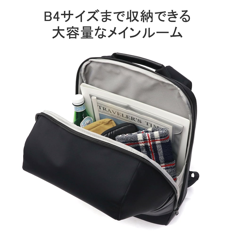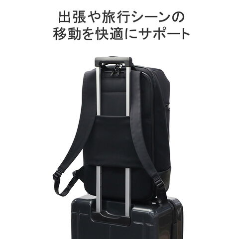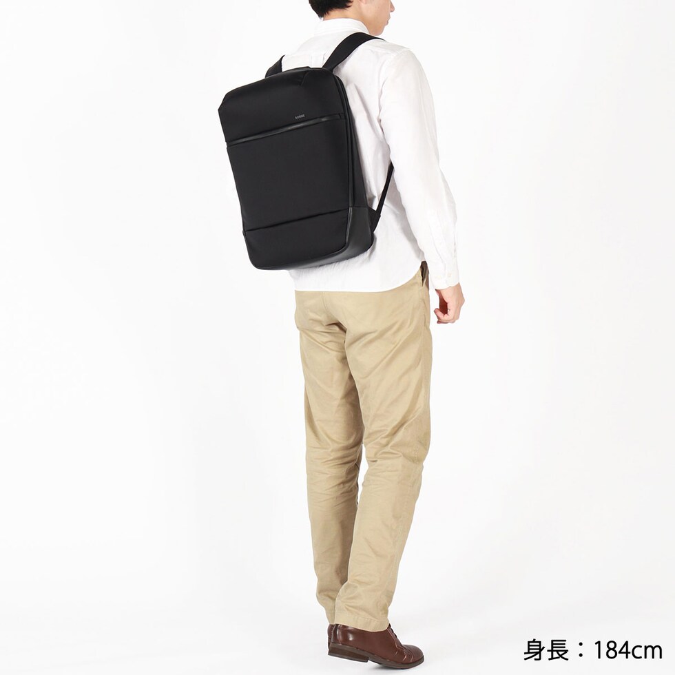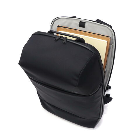 整理のしやすさをこだわり抜いた機能的なシリーズ『TRIM/トリム』のB4サイズバックパック。メイン素材は、上品で適度に光沢のある撥水ナイロンを使用。またハンドルや底面部分には、マイクロファイバーをベースにした素材を採用しており、革のような高級感がありながらも軽量かつ耐久性に優れた機能がポイントです。
