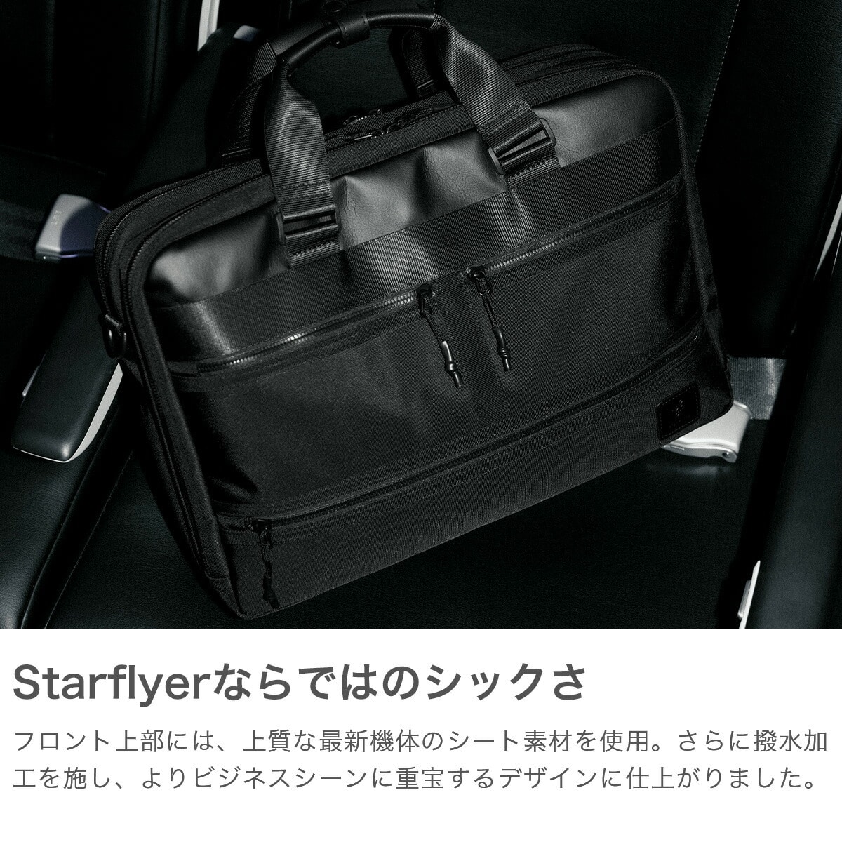 今までにない価値を提供する「第3の航空会社」スターフライヤーとのコラボコレクションから2WAYビジネスバッグが登場。さまざまな場面でのライフスタイルを現代的に解釈し、ビジネスシーンやトリップでシームレスに活躍する機能性と、コラボならではのラグジュアリーな表情を備えたアイテムです。