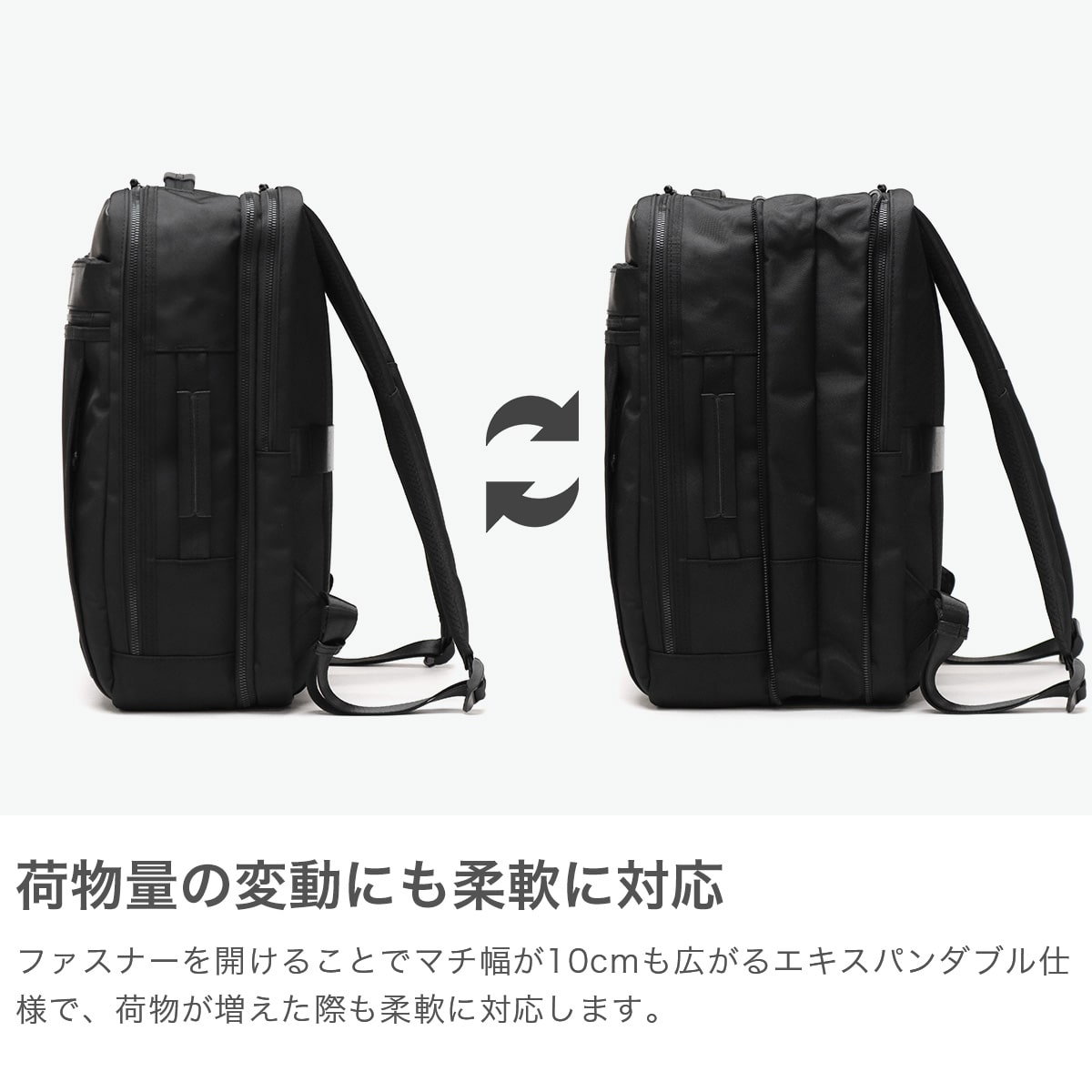 拡張できる収納力 通勤も出張も快適