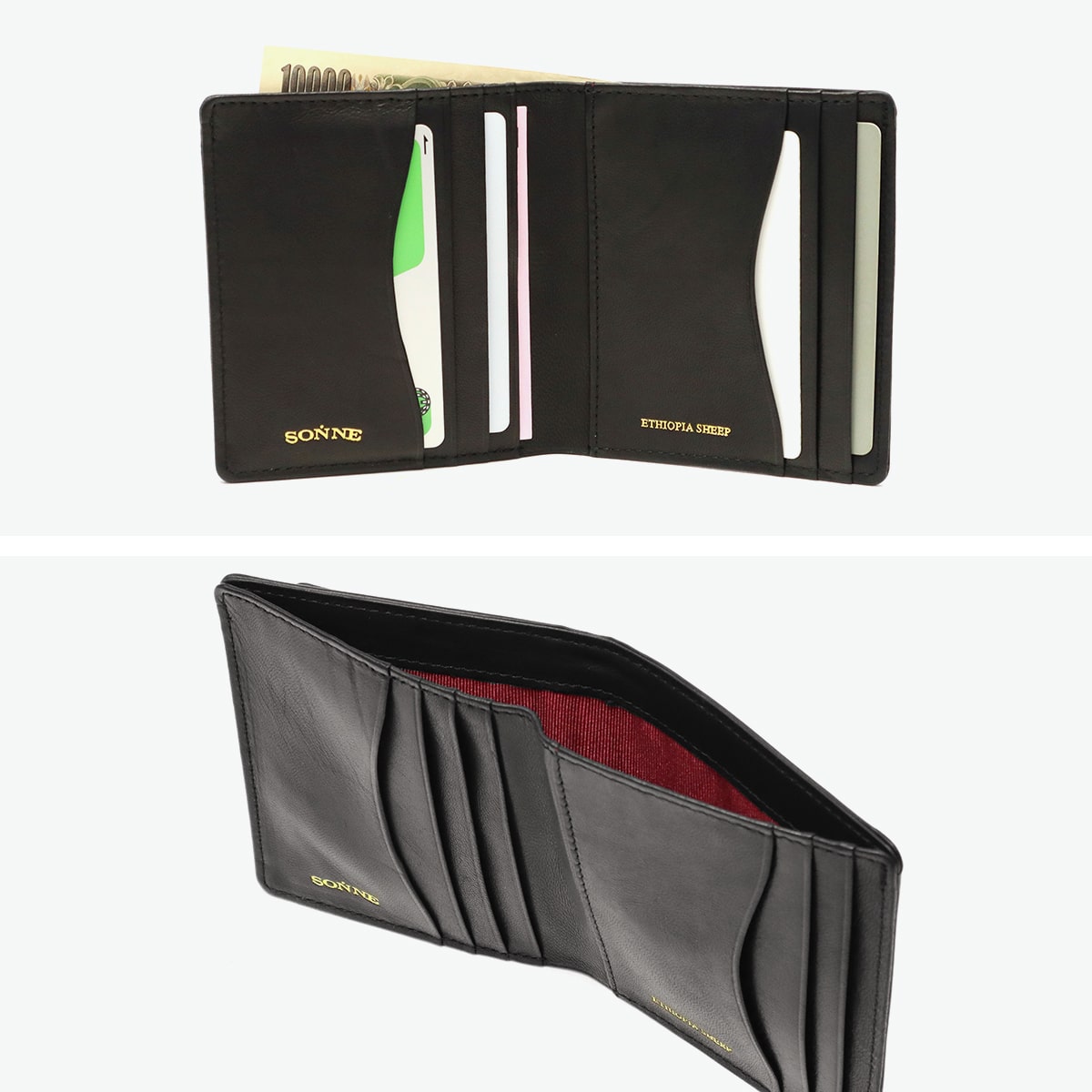 ゾンネ 財布 メンズ レディース 二つ折り 二つ折り財布 革 本革 羊革 シープレザー ブランド SONNE コンパクト 小銭入れ付 小銭入れあり おしゃれ 薄型 スリム SCHAF マルチコンパクトウォレット SOS009A