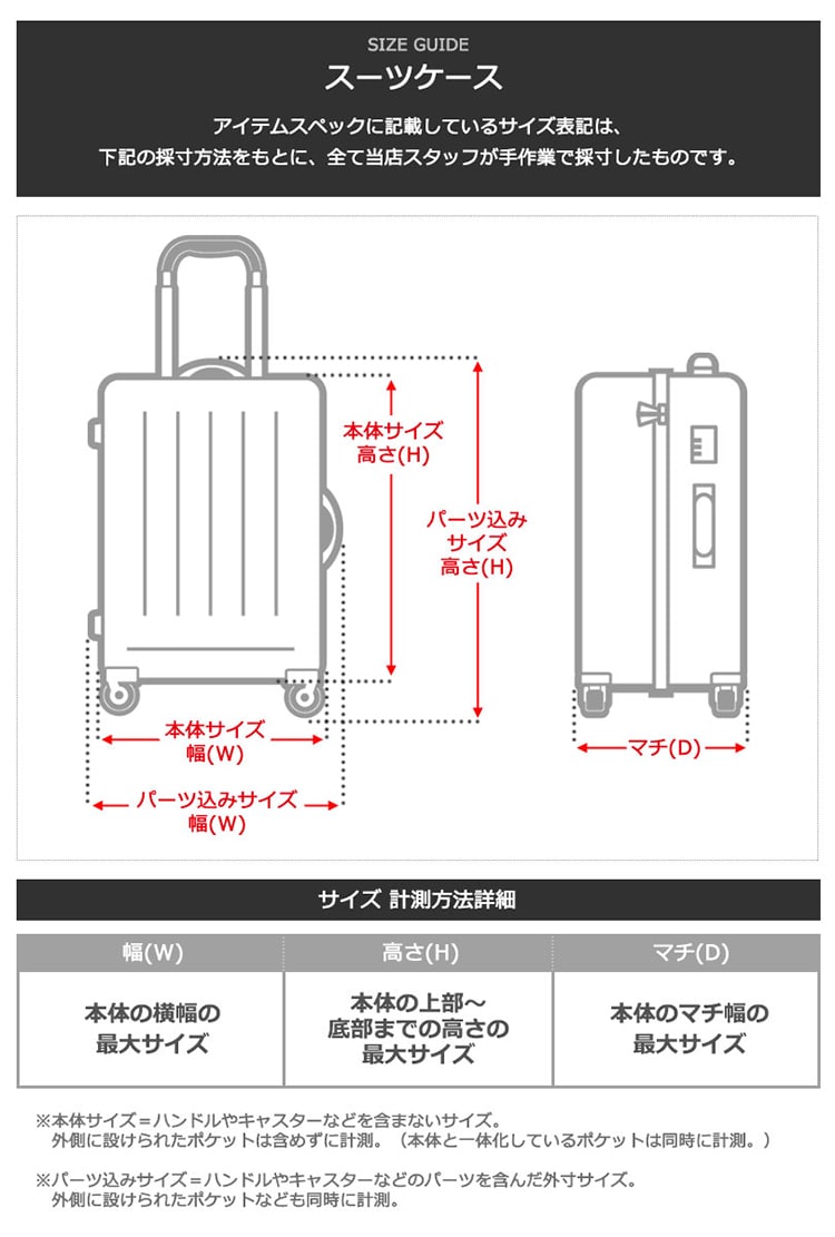 ・エキスパンダブル機能付きの製品は、マチ拡張時の3辺の和が機内持ち込みサイズ、預け入れ無料サイズを超える場合がございます。また、航空会社や飛行機の機種などによって規定が異なりますので、予めご確認の上お求めください。