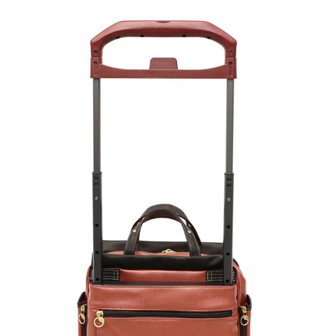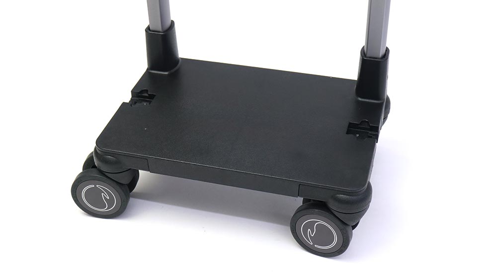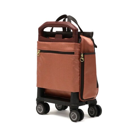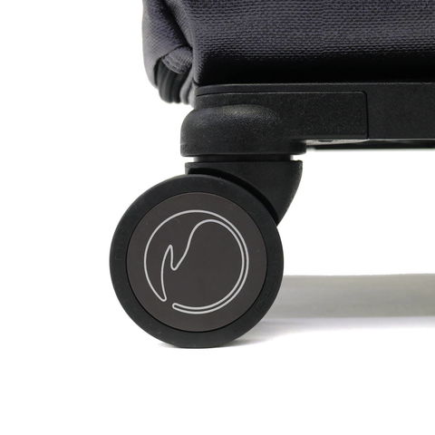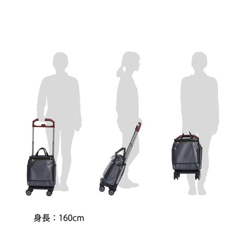 キャスターの取り付け位置をフレームの外側にすることで、トローリーバッグの重心が安定し、歩行中にも横転しにくいように工夫されています。また、360度回転する滑らかな双輪キャスターを採用することで、さらに安定感を高めスムーズな歩行をサポートしてくれます。