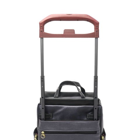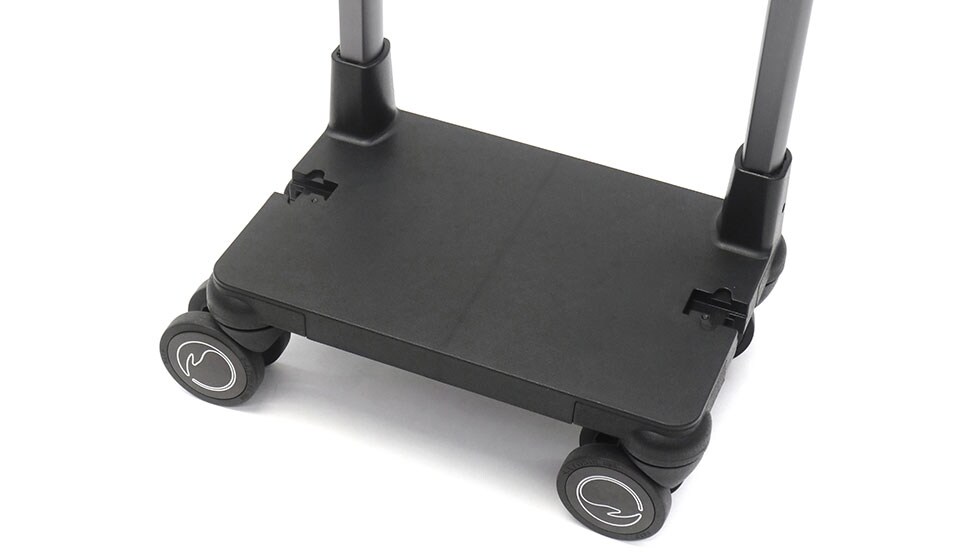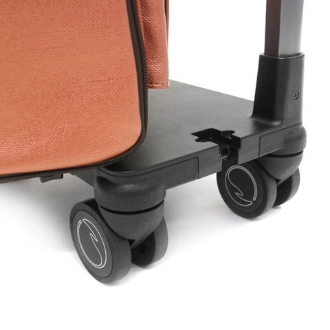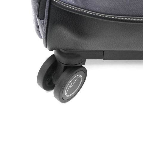 キャスターの取り付け位置をフレームの外側にすることで、トローリーバッグの重心が安定し、歩行中にも横転しにくいように工夫されています。また、360度回転する滑らかな双輪キャスターを採用することで、さらに安定感を高めスムーズな歩行をサポートしてくれます。