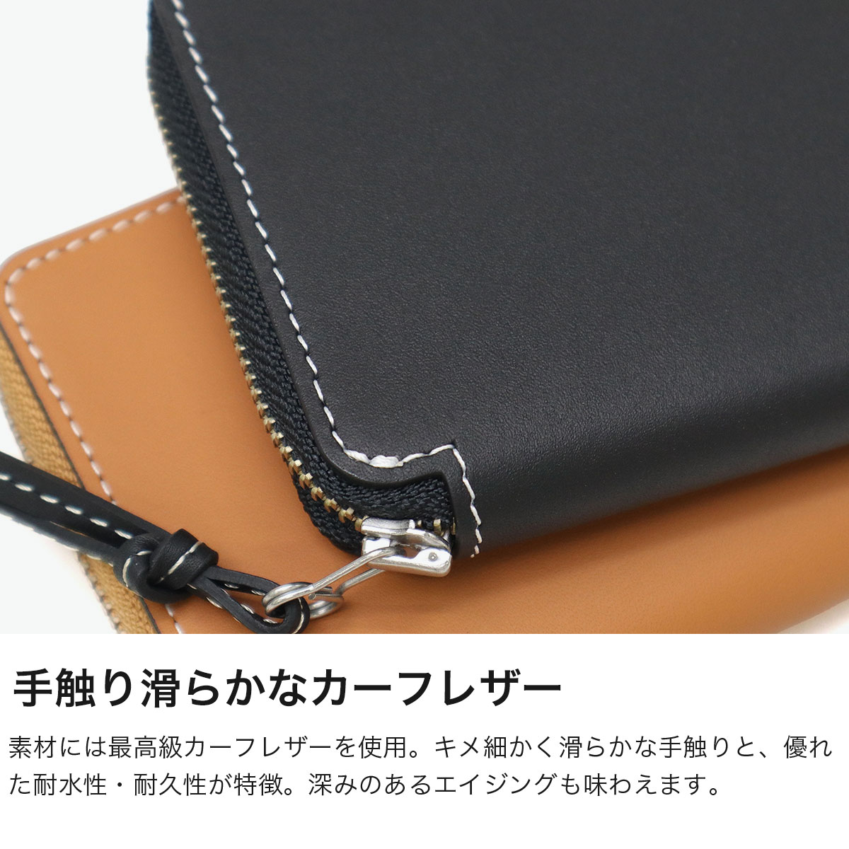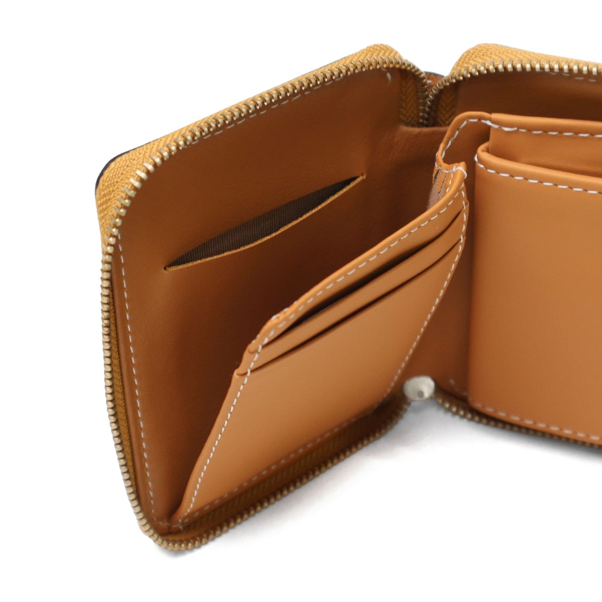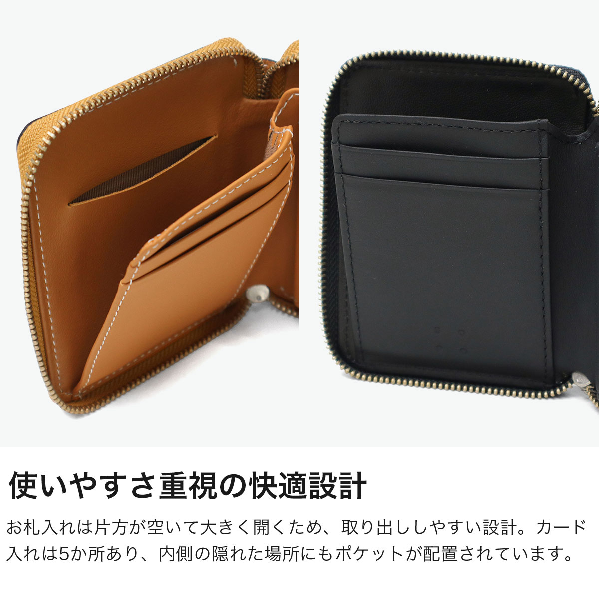 フランス最古のタンナー『DEGERMANN社(現HAAS社)』の最高級カーフレザーを使用した、ラウンドジップの二つ折り財布です。歴史ある日本のお財布専門工場でつくられた丁寧な仕上がりが魅力。女性の手にも綺麗に収まるコンパクトサイズで、小さめバッグやポケットにもすっきりと収納できます。繊細でありながらタフに使える強さをもっており、贈り物にもおすすめなアイテムとなっています。