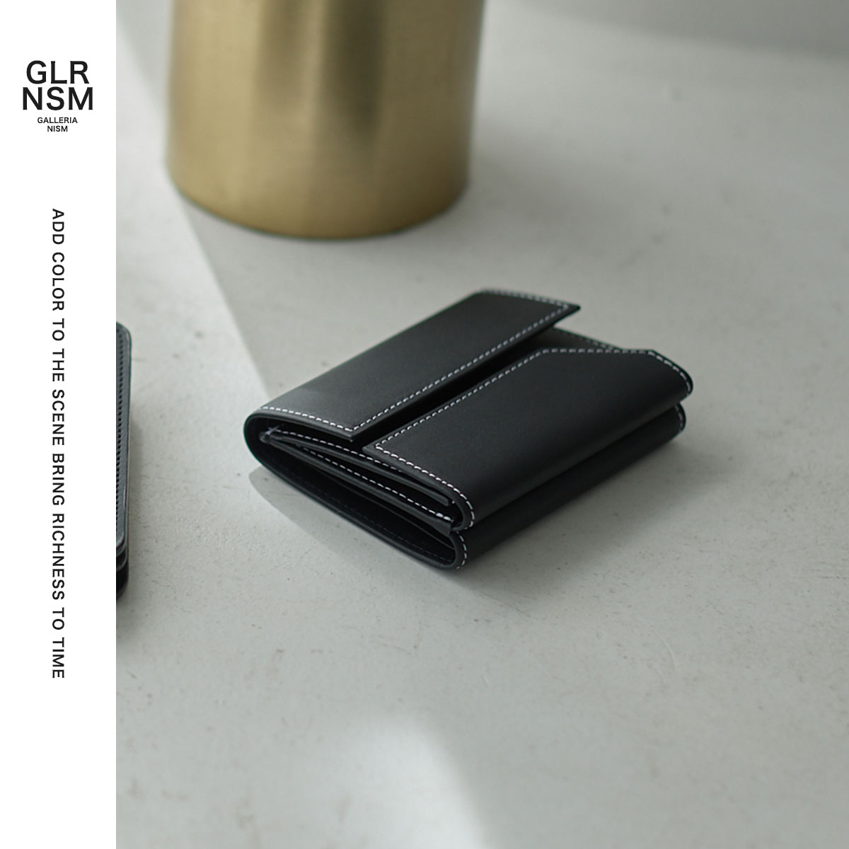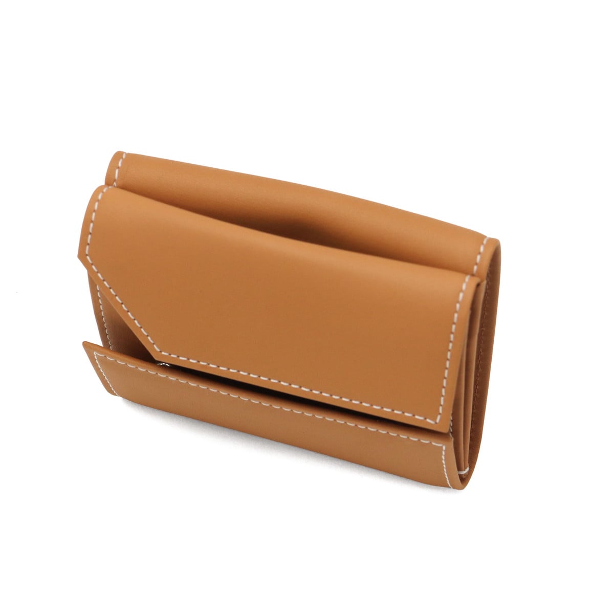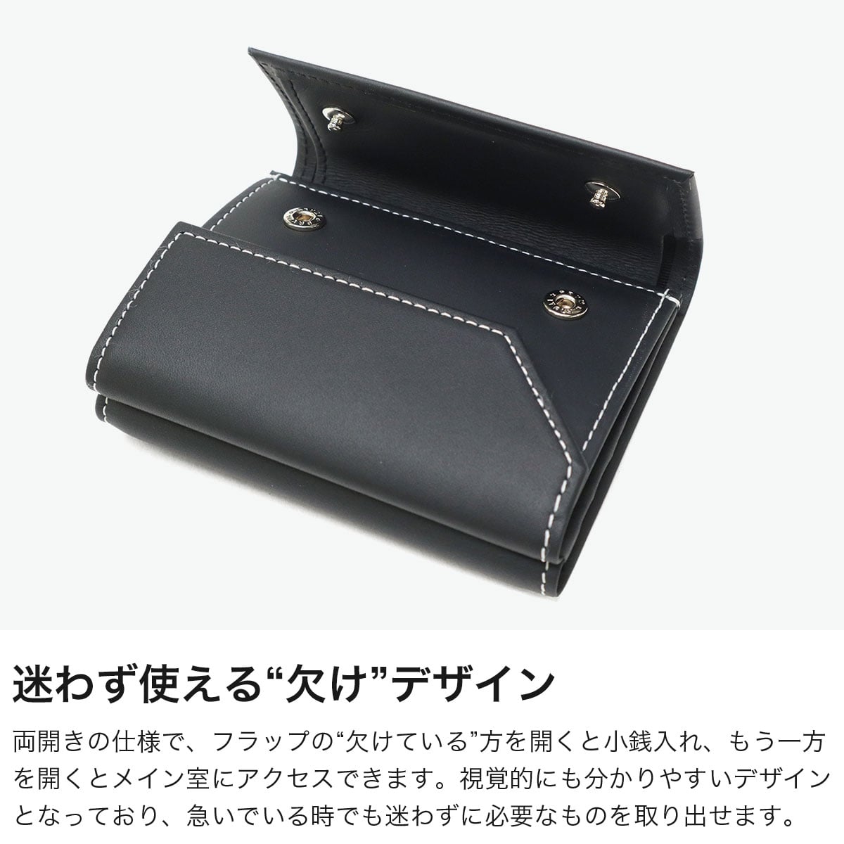 フランス最古のタンナー『DEGERMANN社(現HAAS社)』の最高級カーフレザーを使用した、三つ折り財布です。歴史ある日本のお財布専門工場でつくられた丁寧な仕上がりが魅力。一見シンプルですが、フラップの片方が欠けているデザインがポイントになっており、さりげないおしゃれを楽しめます。