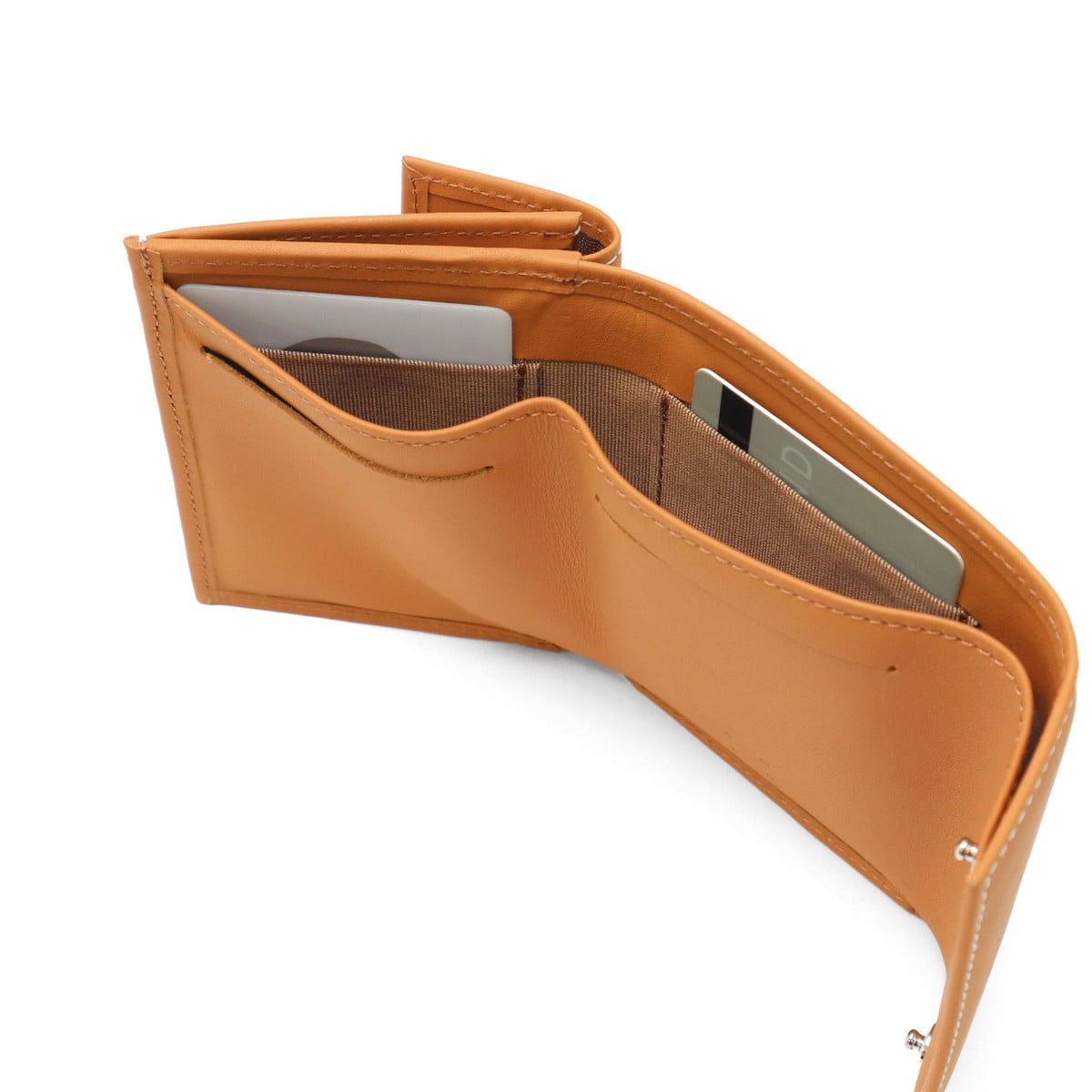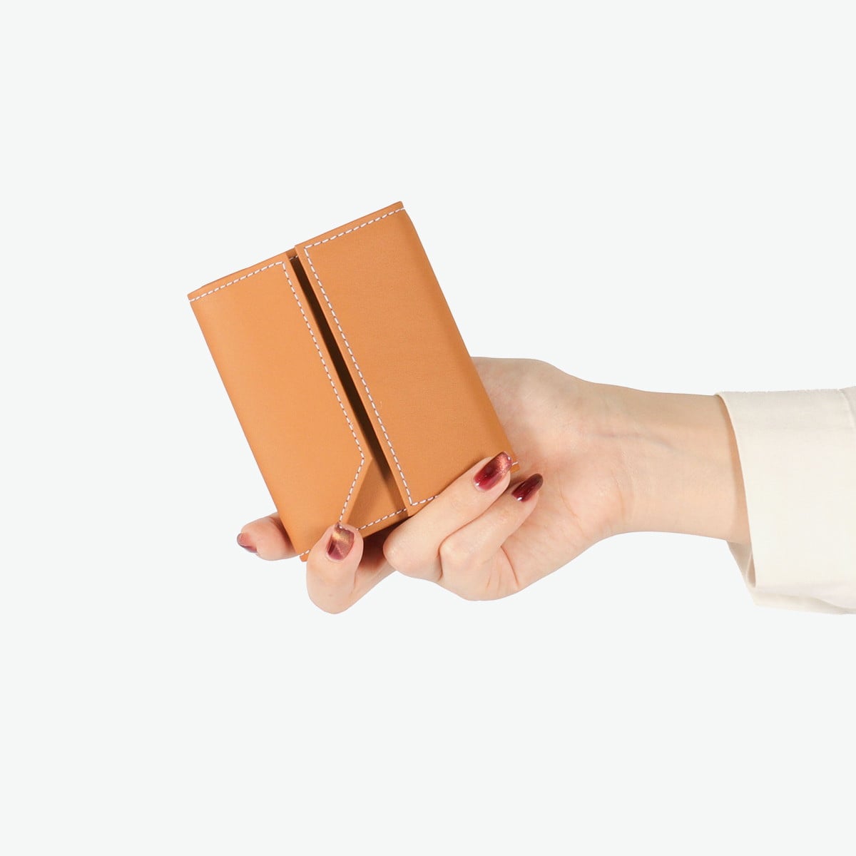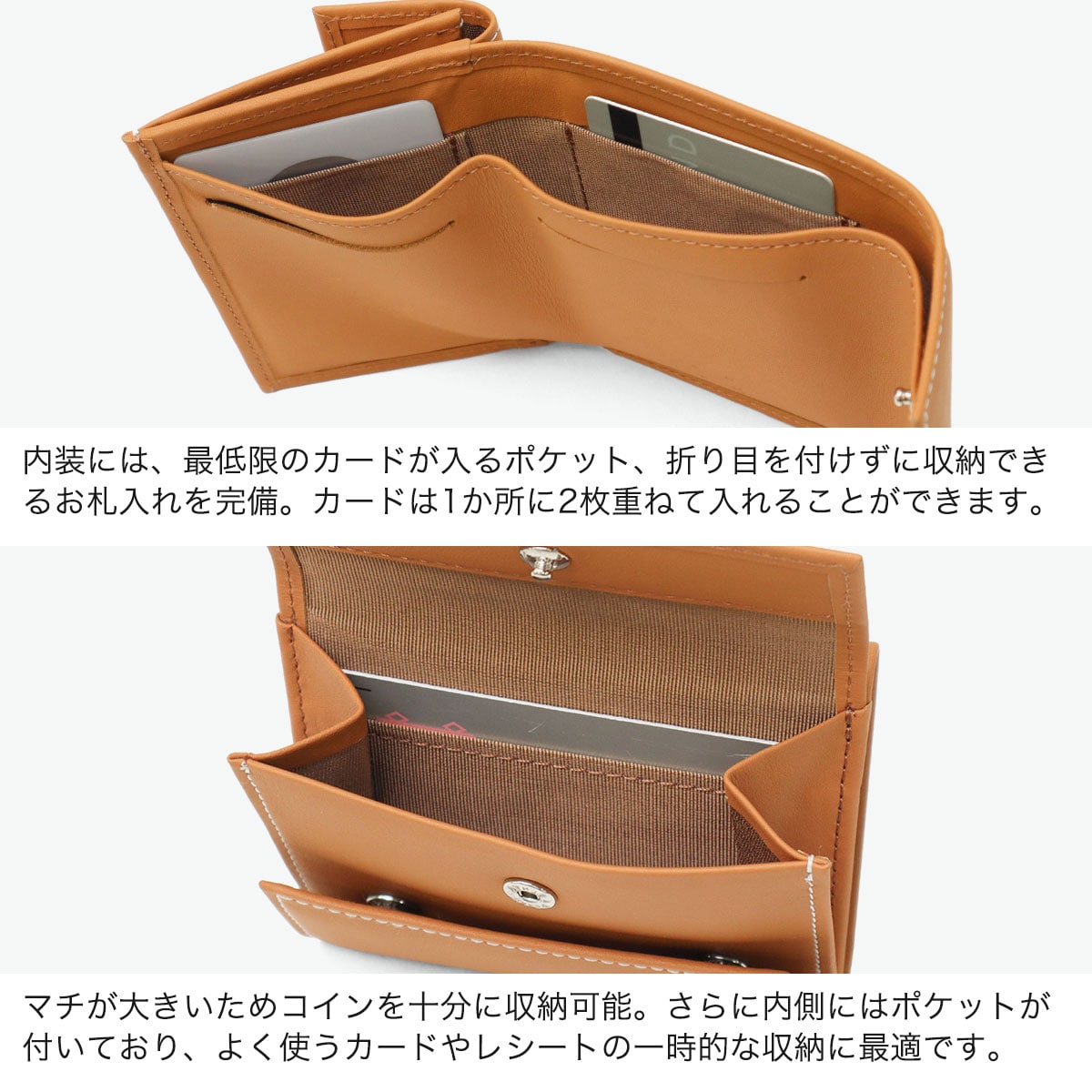 フランス最古のタンナー『DEGERMANN社(現HAAS社)』の最高級カーフレザーを使用した、三つ折り財布です。歴史ある日本のお財布専門工場でつくられた丁寧な仕上がりが魅力。一見シンプルですが、フラップの片方が欠けているデザインがポイントになっており、さりげないおしゃれを楽しめます。