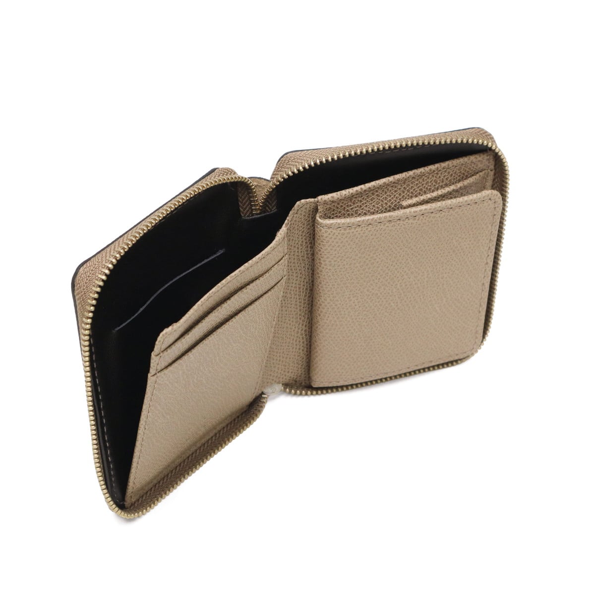 最高級のカーフレザーを使用した二つ折り財布。繊細なエンボス加工による豊かな表情と、キズが目立ちにくい丈夫さが魅力です。女性の手にも収まるコンパクトなサイズ感で、小さめのバッグにもすっきり収納可能。大きく開く小銭入れや取り出しやすいお札入れなど、使いやすさも追求しています。細部まで丁寧に仕立てた、高級感のある逸品です。