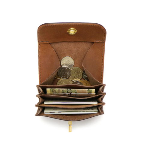 「シンプル&頼れる」をコンセプトにしたSOW&SEWのギャルソンコンパクトウォレット。マットなレザーの質感と真鍮製金具が相まって気品高い印象を与えてくれます。内装は、使い手に寄り添った構造になっており、使うたびにとても気持ちの良い想いになれる、そんな一品です。視認性に富んだ小銭入れのほかに、折り畳んだお札やカードも収まり、小さくても必要な機能を備えた仕上がりとなっています。