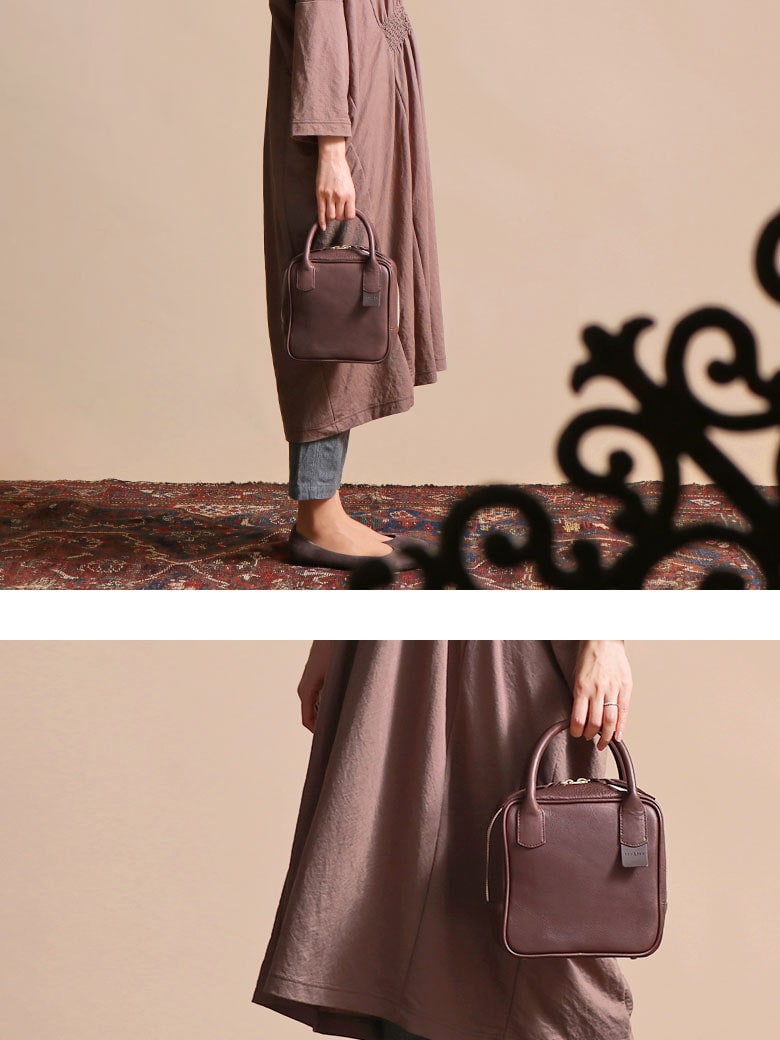 鞄ひとつでその日のコーディネートが凛と引き締まるように...、ちょっとしたお出かけからハレの日にも使える鞄があったら...。そんな日常と非日常を使い分けることなく使える鞄をイメージして作られたSOW&SEWのハンドバッグ。小さいサイズはコロンとした佇まいが愛らしい正方形のタイプです。上質な素材と確かな職人の技術で仕立てあげた、シンプルながらどこか愛嬌のある鞄。カジュアルにもきれいめスタイルにも似合う、ずっと愛用したくなるアイテムです。