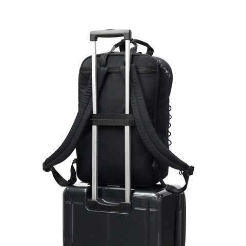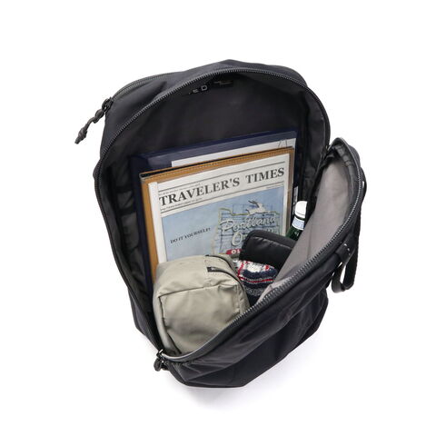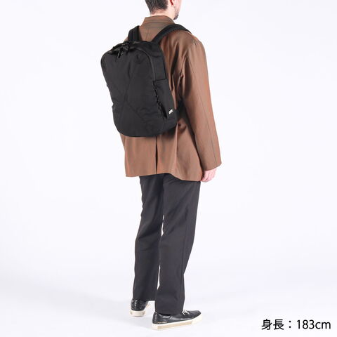 どんなスタイルにも合わせやすい、丸みを帯びたデザインの『エクスサック スタンダード』シリーズの2WAYバックパック。本体には軽量かつ耐久性のある320デニールのコーデュラナイロンを採用。抗菌加工が施された内装には再生ポリエステル素材を使用しています。ハンドル付きで手持ちでもお使いいただけます。