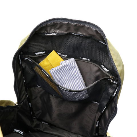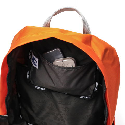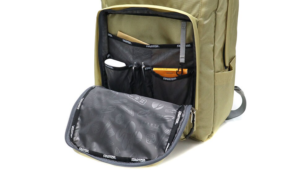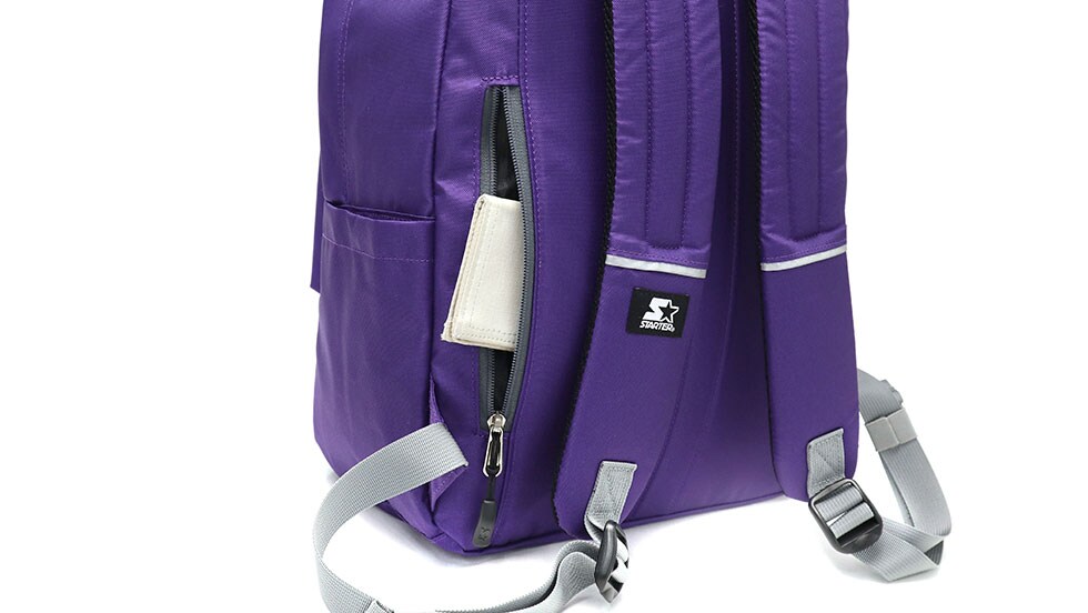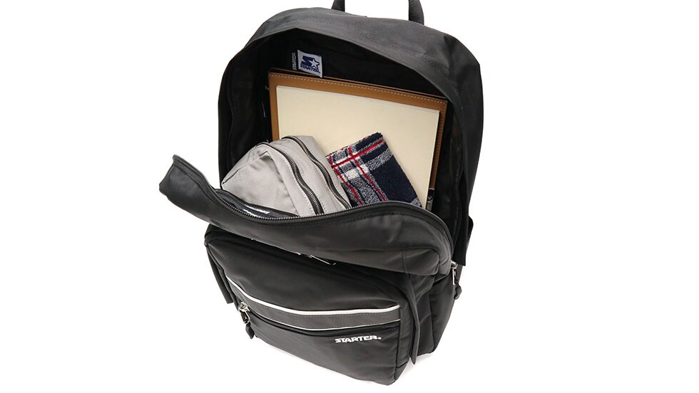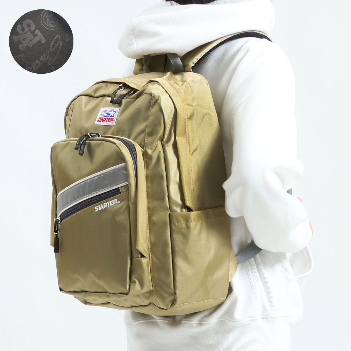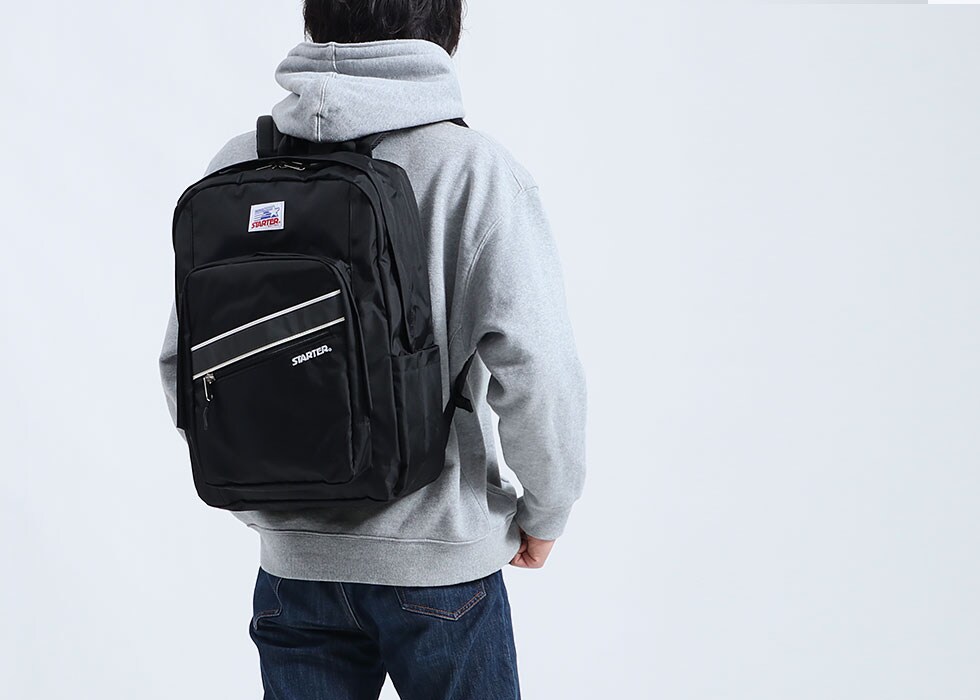スポーツウエアとポップカルチャーを融合した草分け的ブランド『STARTER』の大容量かつ収納機能の豊富なリュック。雨水が染みにくい撥水素材と、壊れにくい耐摩擦性タフジッパーを搭載したタフな仕上がりは通学にオススメ。フロントのラインはリフレクター仕様で、夜間の歩行も安全にサポートします。