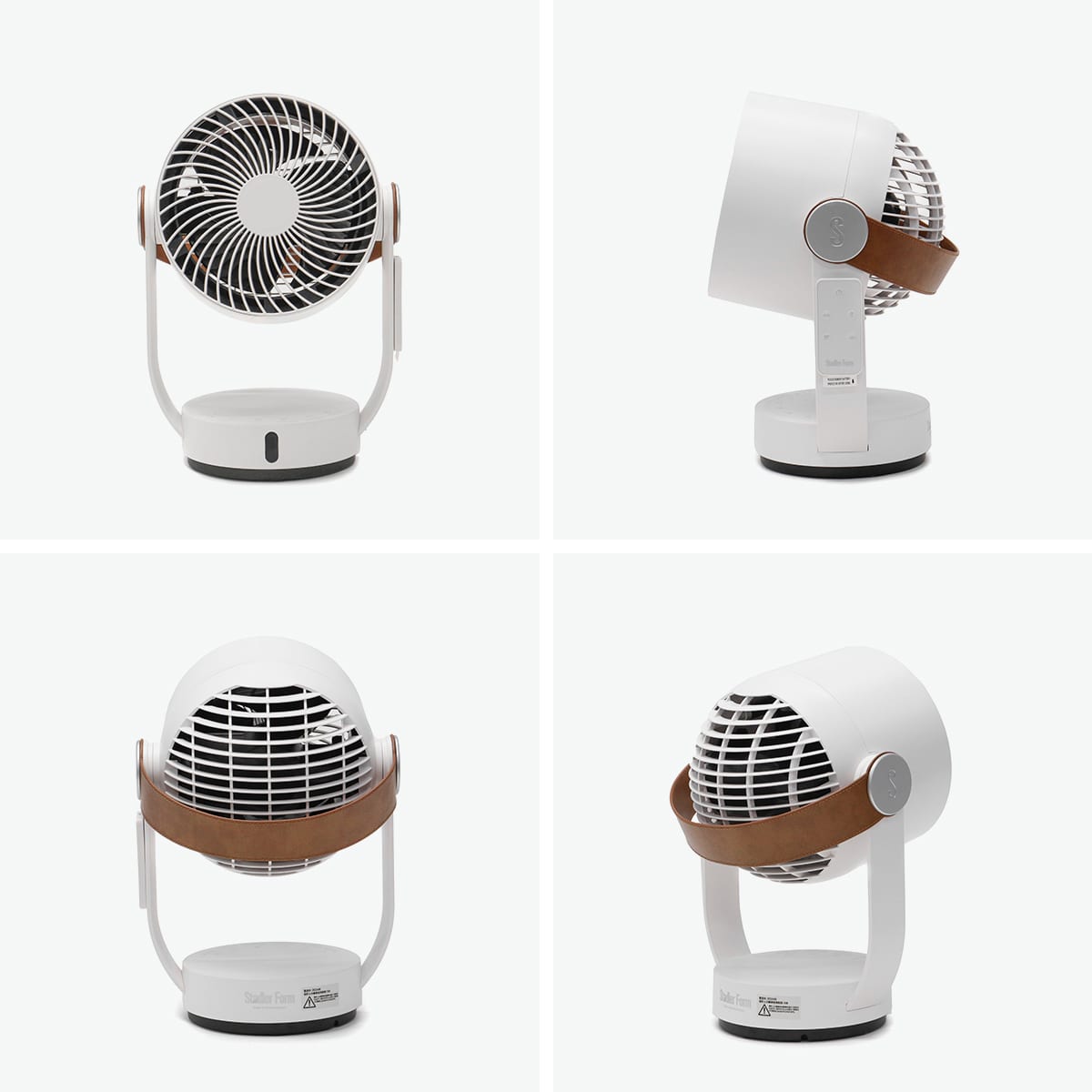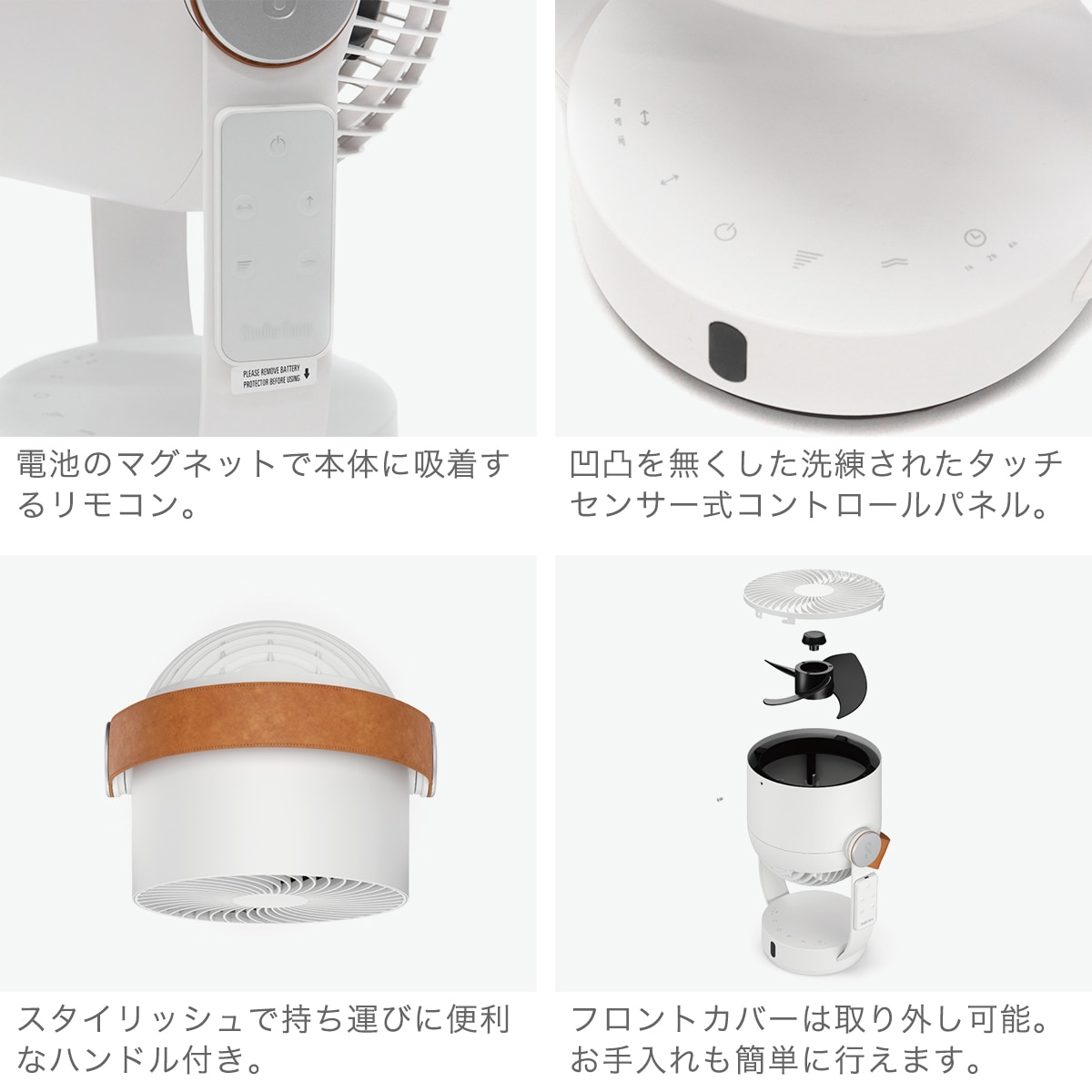 重量わずか1.7kg とコンパクトで軽量なサーキュレーター「Leo」。上下左右、あらゆる方向に自動で風を送ります。ヴィーガンレザーを使用したハンドルが、持ち運びに便利な設計。スタイリッシュなデザインの中に機能満載で、お部屋を快適な空間へと導いてくれます。