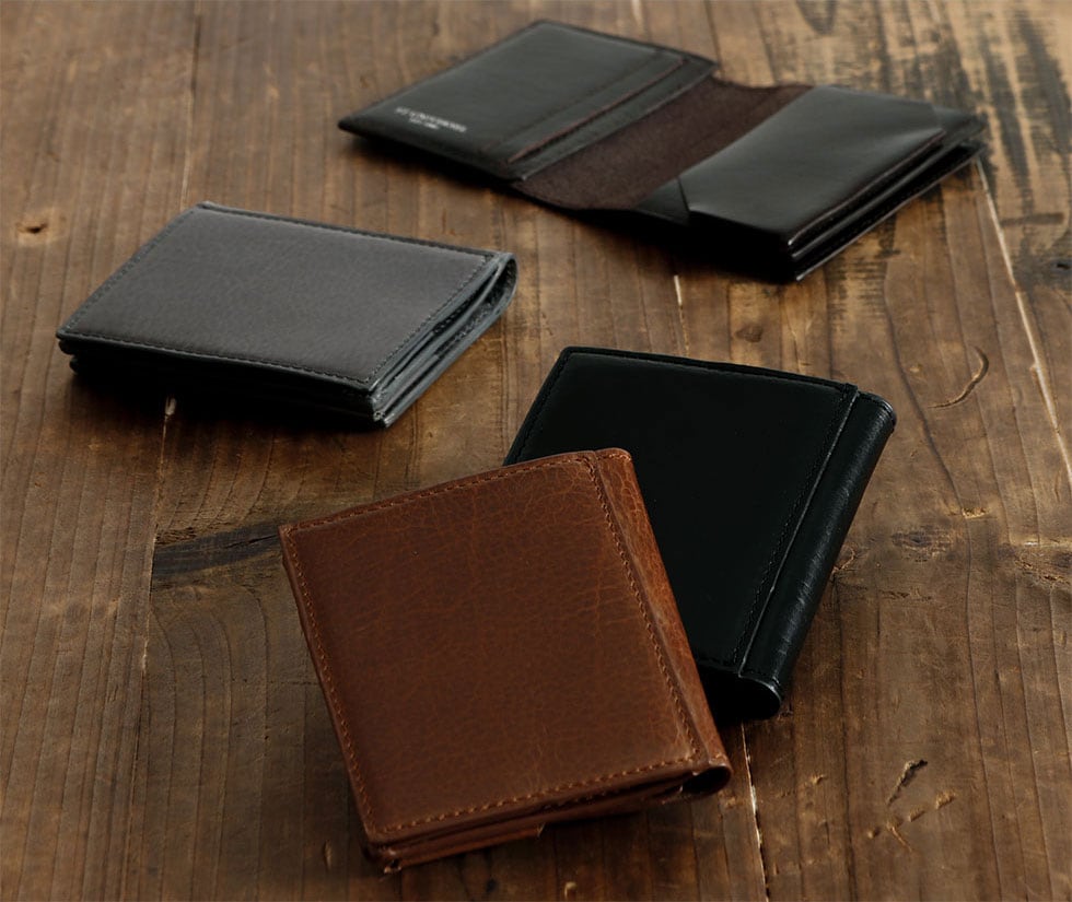 財布としての機能性や実用性を保ちつつ、小さすぎず大きすぎず手のひらにちょうどよく収まる快適さを追求した財布です。カジュアルで経年変化も楽しめるヴィンテージレザー、ビジネスシーンで映えるサフィアーノ調レザーの豊富なカラーバリエーションでラインナップしています。