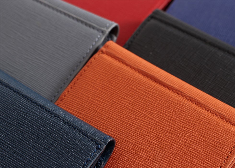 ビジネスシーンからプライベートシーンまで分け隔てなく使って頂けるサフィアーノ調型押しを施したレザーは、レザー特有の馴染みを味わえながらも傷や汚れが付きにくく目立ちにくいのが特徴です。ベーシックな色から明るめな色まで、彩り豊かなカラー展開も魅力的です。