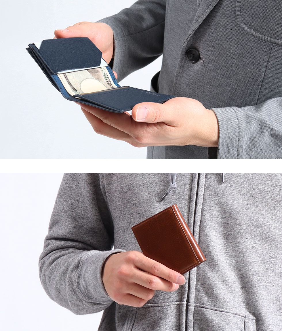 二つ折り財布なのには理由があります。財布を使用する際の所作をできるだけシンプルにするため。三つ折り財布だと開く際や財布などを取り出す際に若干所作が増えます。無駄なく必要な分だけで使いこなすための財布。毎日手に触れるものだからこそ、その使い勝手はしっかりとしたものであるべきです。
