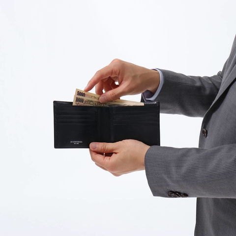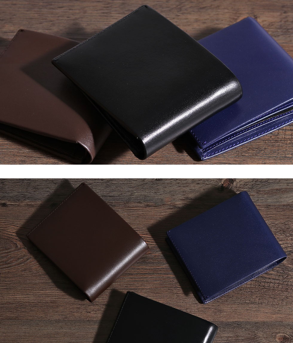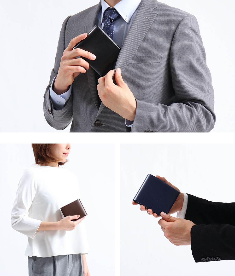 札入れとカード収納に特化したキャッシュレス時代に見合ったキャパシティとアニリンレザーによる滑らかな肌触りが特徴的な二つ折り財布です。主張しすぎないシンプルさ、艶やかに輝くレザー、それぞれが相まって端正な佇まいを醸し出しています。使用するシーン選ばず、幅広い年代の方にご使用いただけるアイテムです。