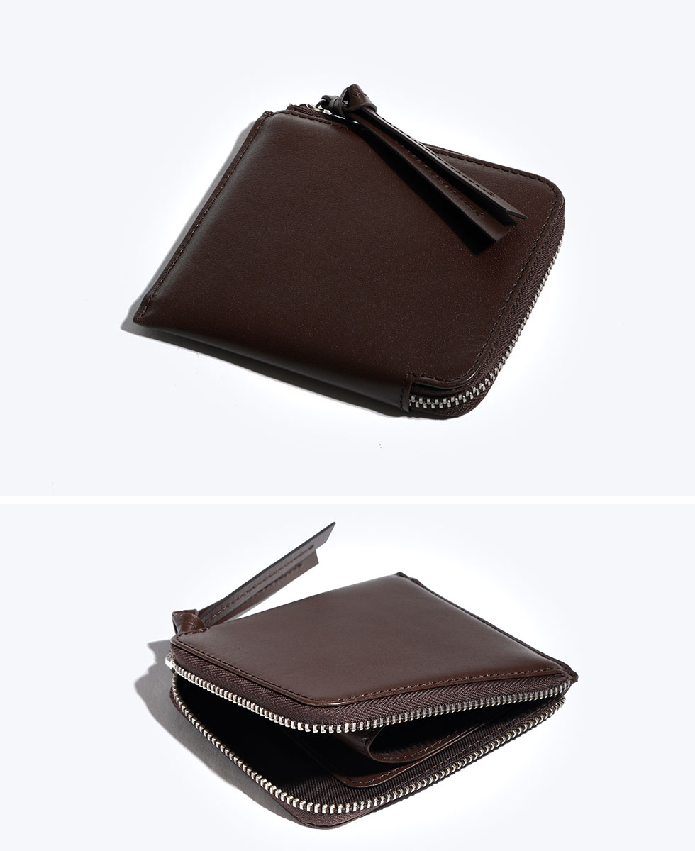 艶やかなレザーを採用しシンプルに仕立てたミニマルなルックスが印象的なL字ファスナーショートウォレット。カードスリットと小銭入れのシンプルかつスリムな構造で、できる限り軽く、薄く、小さく持ちたい方にオススメのアイテムです。品のあるシンプルなルックスのため、ご自身としてだけでなくギフトとしてもオススメです。